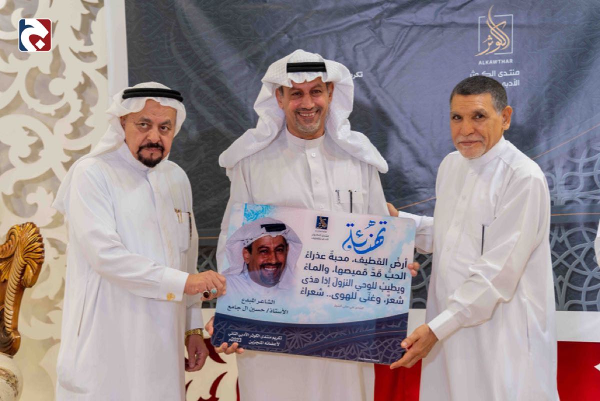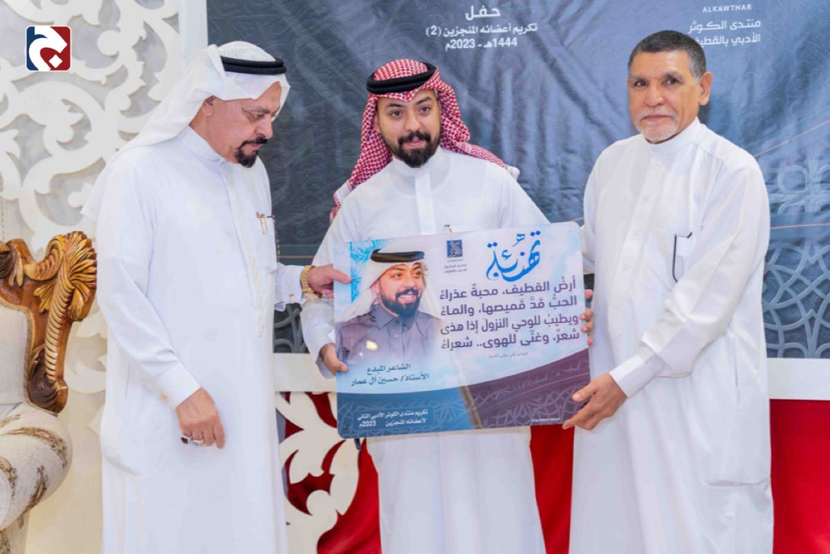 وأضاف الشيخ: ها نحن نشهد في هذا الحفل الذي أقامه منتدى الكوثر الأدبي بالقطيف، رفيع التقدير، وجلال العظيم لثلة من شعرائه ومبدعي، في ميادين المسابقات الشعرية وطباعة الأعمال الأدبية، والحضور اللافت في الساحة العلمية والفنية بوطننا الغالي.