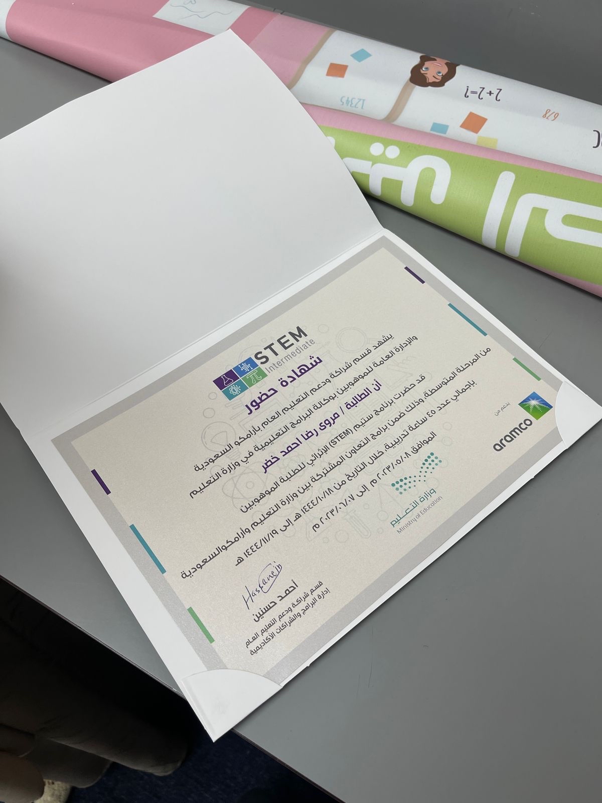 شاركت الطالبة ”مروى رضا خضر“، من المدرسة المتوسطة الثامنة بالقطيف، في برنامج ”ستيم الإثرائي“، الذي يهدف إلى تشجيع وتعزيز الموهوبين في مجالات العلوم والتكنولوجيا والهندسة والرياضيات.