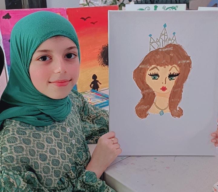 كشفت الطالبة ”فاطمة الشماسي“، التي تبلغ من العمر 10 سنوات، أنها بدأت الرسم في سن صغير جدًا، في عمر الثالثة، حسب ما قالته لها والدتها، مؤكدةً أن الرسم بالنسبة لها هو تعبير جميل عما في داخلها.