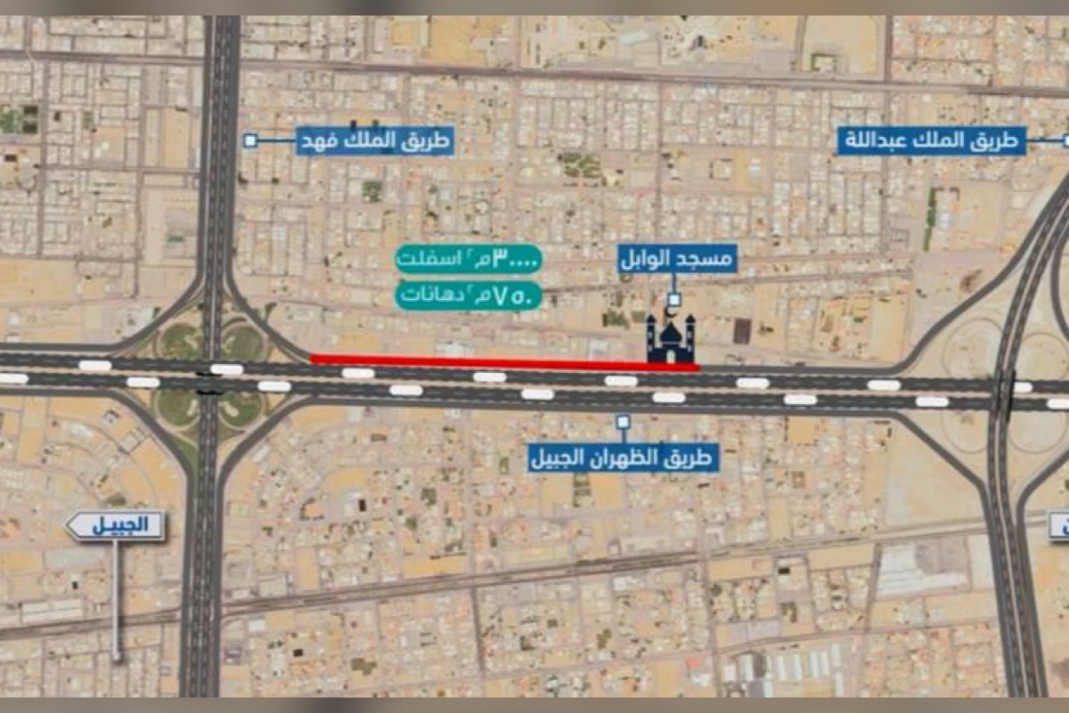 لمدة 30 يوما.. بدء أعمال صيانة طريق الخدمة ”الظهران الجبيل“ أمام مسجد الوابل