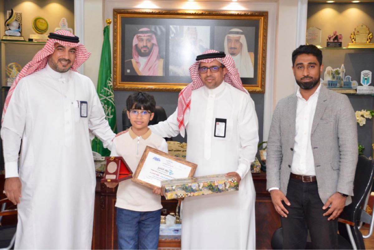 وقدم ”القرني“ لوالد الطالبين هدية تقديرية مثنيًا على جهود الأسرة في حضانة موهبة ابنيهما، بما يدعم الرعاية التي تقدمها وزارة التعليم للطلاب الموهوبين.