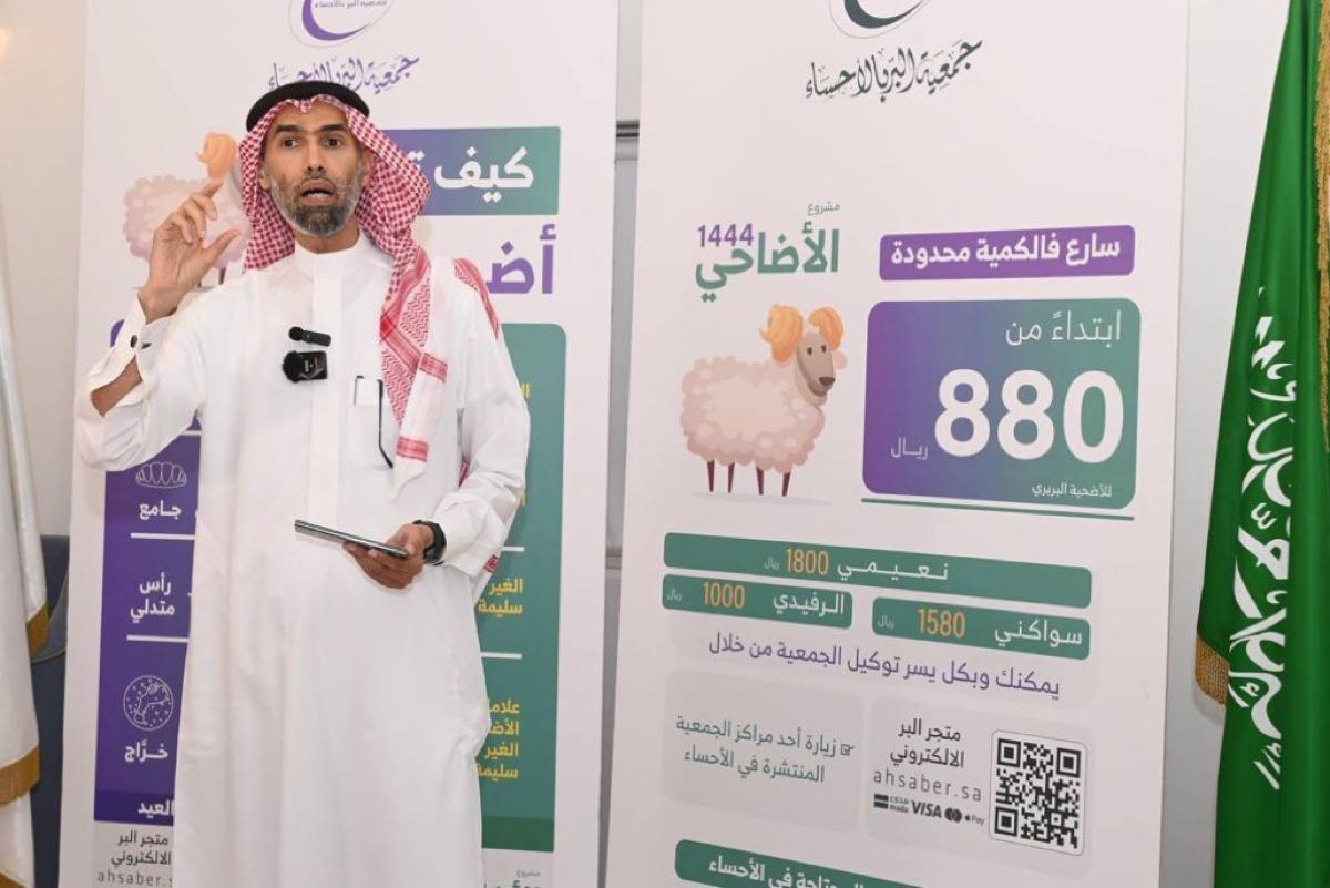 كشفت جمعية البر بمحافظة الأحساء عن أسعار الأضاحي لعام 1444ه، ووصل النعيمي إلى 1800 ريال، والسواكني 1580 ريالا، والرفيدي 1000 ريال، والبربري 880 ريالًا.