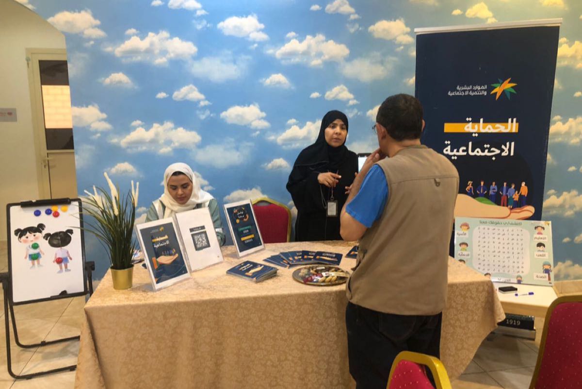 وشارك المركز بتوجيه من مديرة الوحدة عبير الدوسري، ومشاركة القسم الاجتماعي والنفسي بركن تعريفي لخدمات الوحدة ودورها في حماية الأسرة من العنف الأسري.