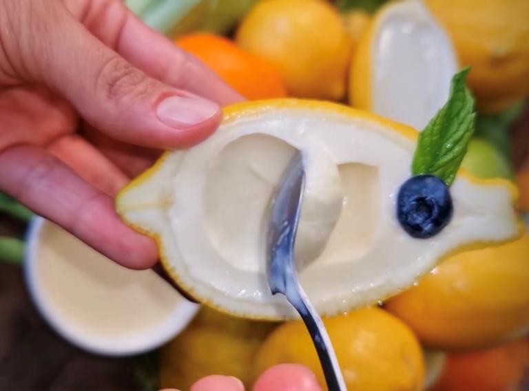 ويتميز هذا النوع الجديد من ”كاسترد الليمون“ باستخدام الليمون كوعاء لتقديم الحلوى، وهو فكرة جديدة ومبتكرة في عالم الحلويات.