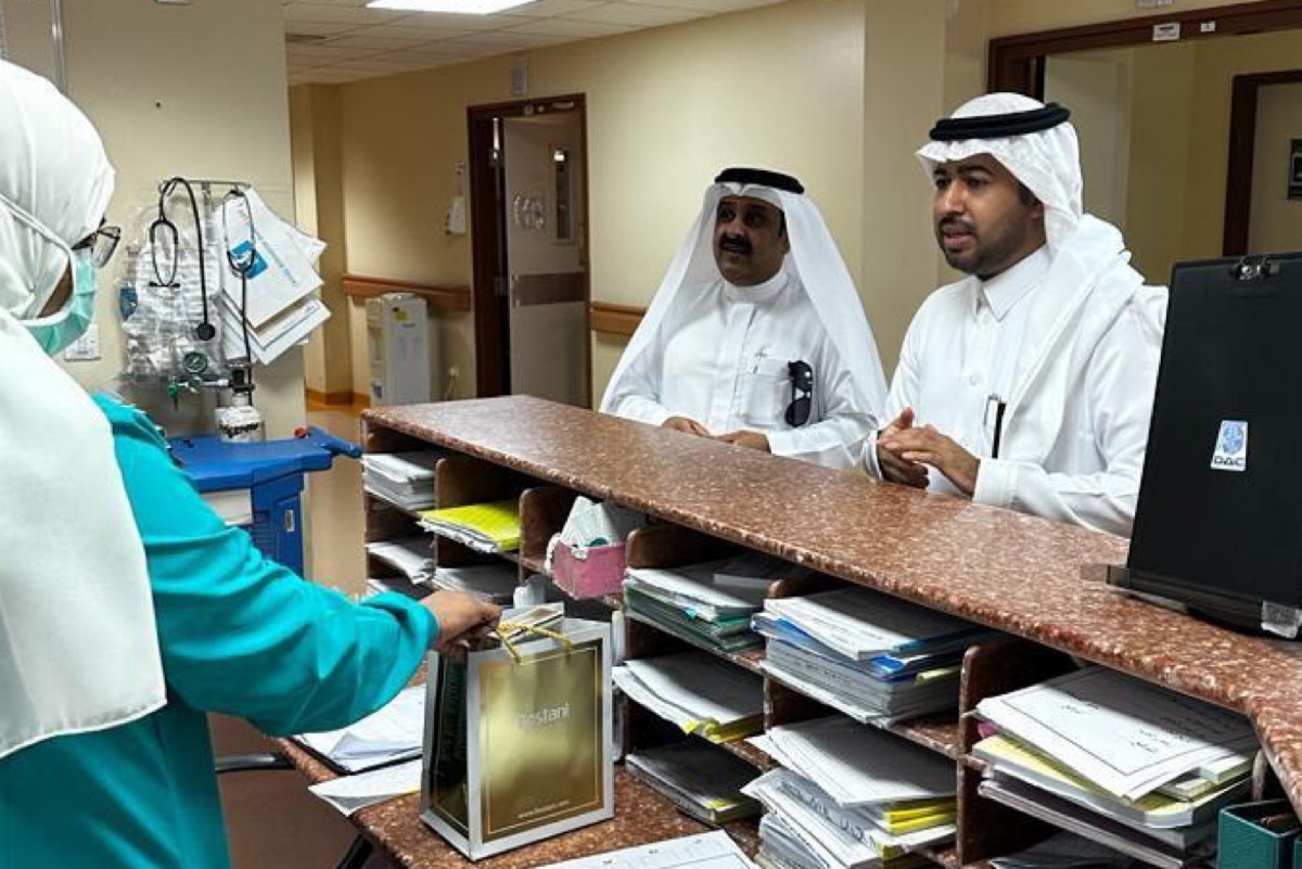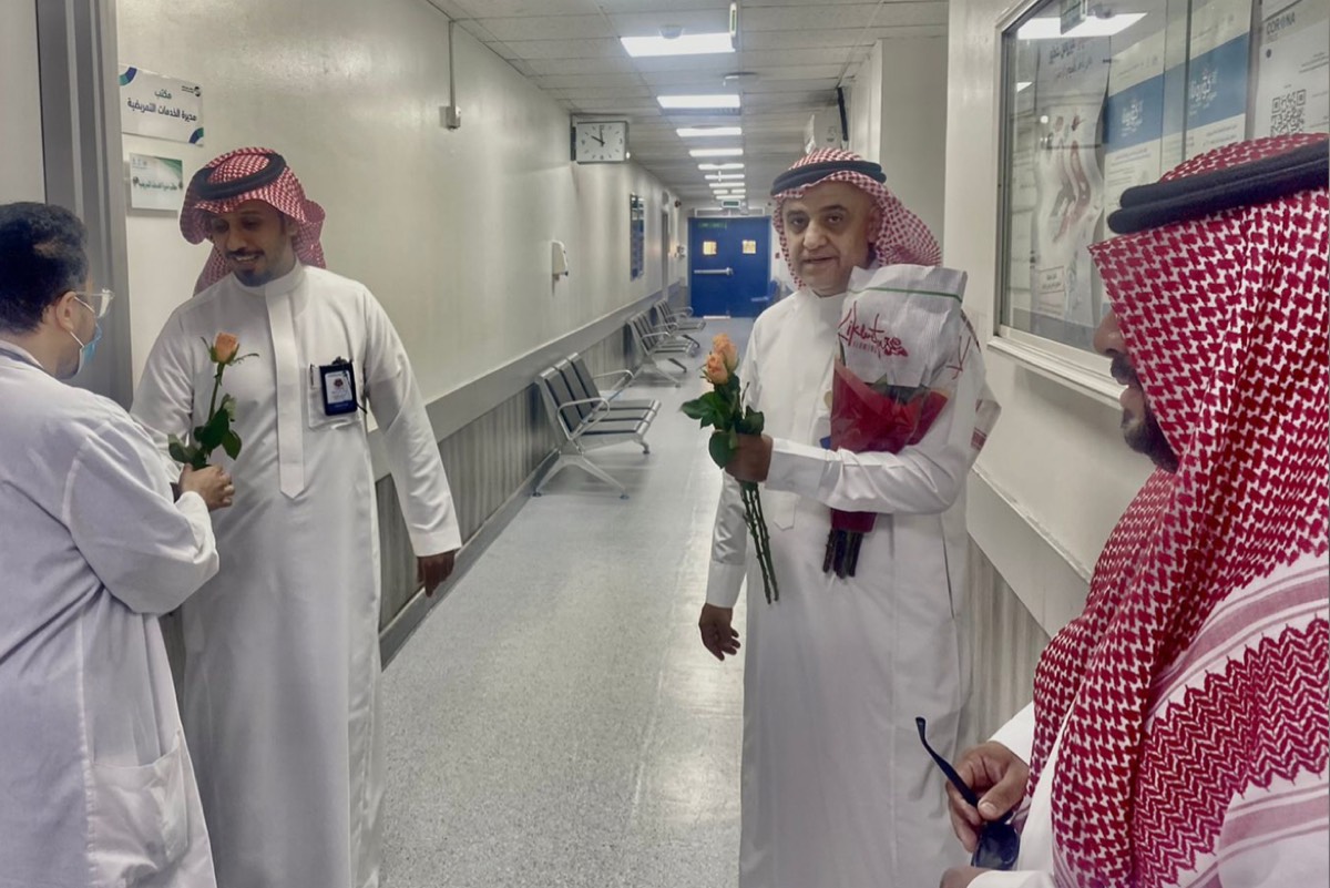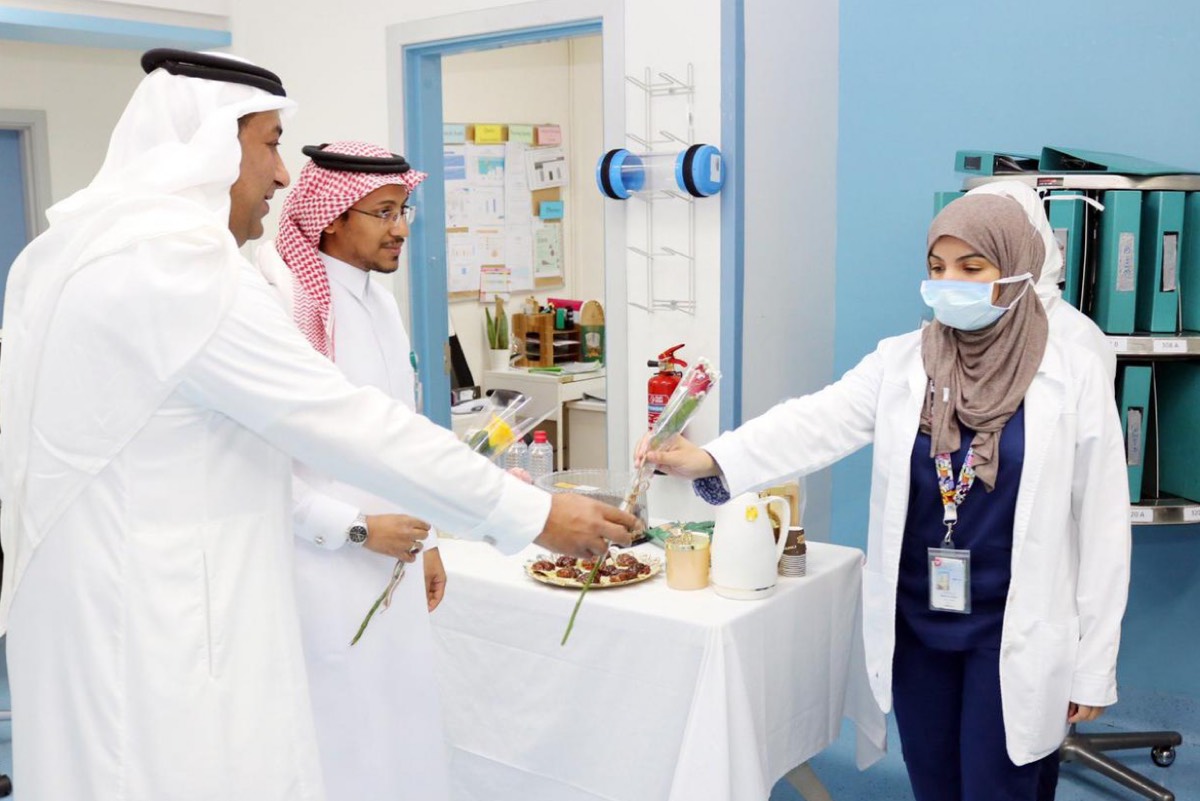 وعايد نائب رئيس تشغيل شبكة الدمام الصحية د. خالد الخميس، أبطال الصحة والعاملين بالمجمع والمرضى المنومين، وتقديم الهدايا لهم.