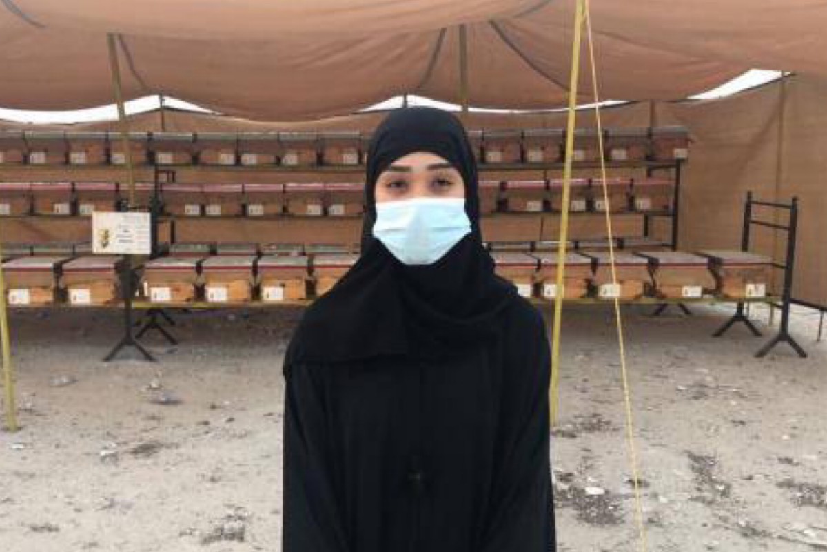 وذكرت أن فكرتها عبارة عن حبل من الليف مربوط في صندوق خشبي ومتصل مباشرة بمياه البئر، إذ يمتص الحبل المياه ويستطيع النحل شربها بطريقة أفضل.
