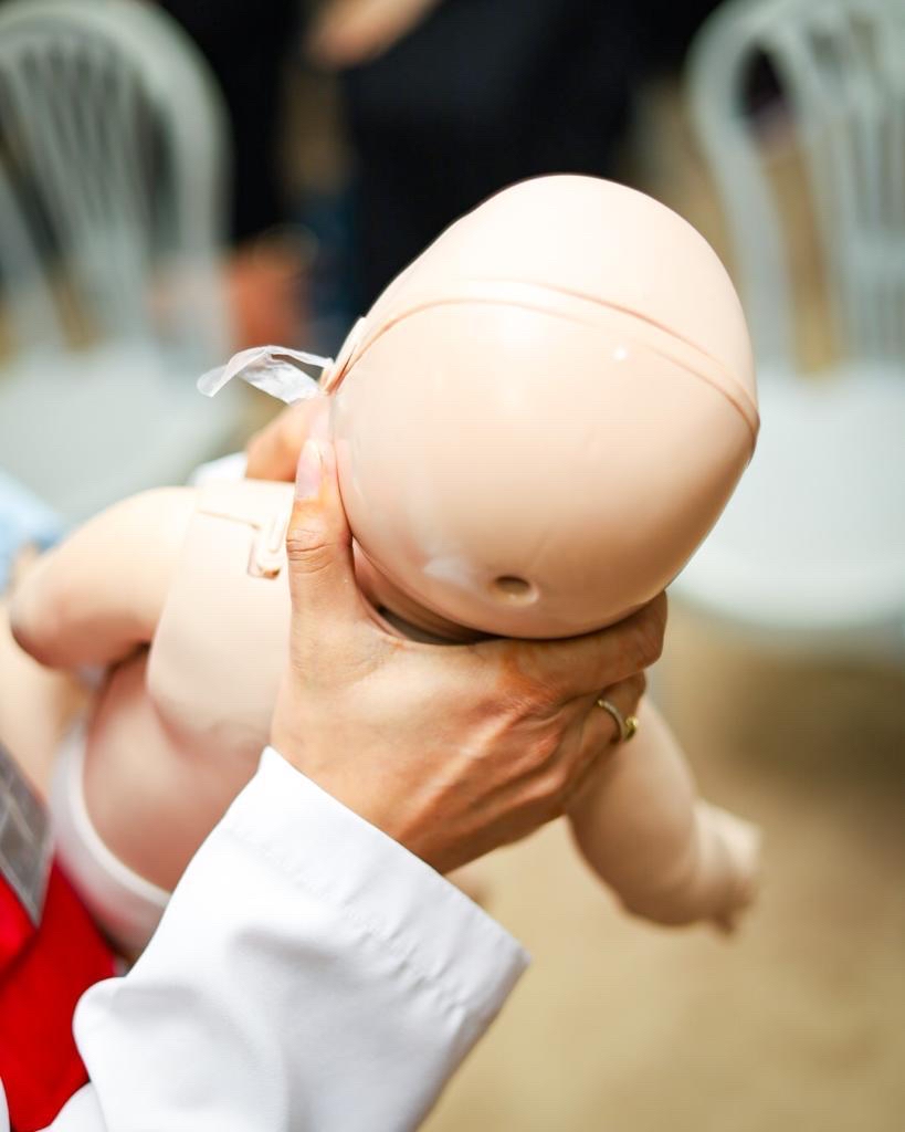 وفي إطار التدريب العملي، تم استعراض حقيبة الإسعافات الأولية المنزلية وتشجيع المشاركات على أهمية وجودها في كل دور بالمركز أو البيت، وذلك وسط مشاركة المتدربات في التطبيق العملي على الدمى المعروضة في الورشة.