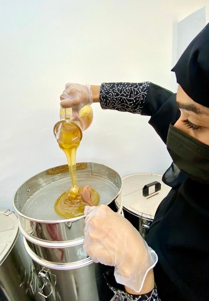 وأوضحت أن المرحلة التالية لذلك هي تصفية العسل، والتي تكون على مرحلتين، وبعدها نقله إلى المنضج، وهو عبارة عن برميل من الستانلس، له صنبور سفلي، ويظل العسل في المنضج عدة أيام، حتى تطفو الشوائب، ثم قطع الشمع وإزالته من سطح العسل، وبعدها مرحلة التعبئة في علب مخصصة لذلك؛ ليكون جاهزًا للتسويق.
