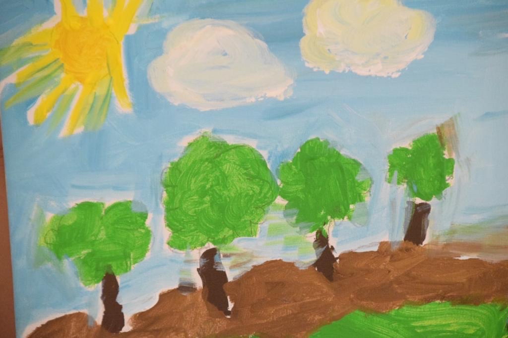 وشاركت الطفلة لولوة بهاء البقشي 5 سنوات برسم لوحة مشرقة، تحتوي على صورتها مع والدتها في أجواء الطبيعة.