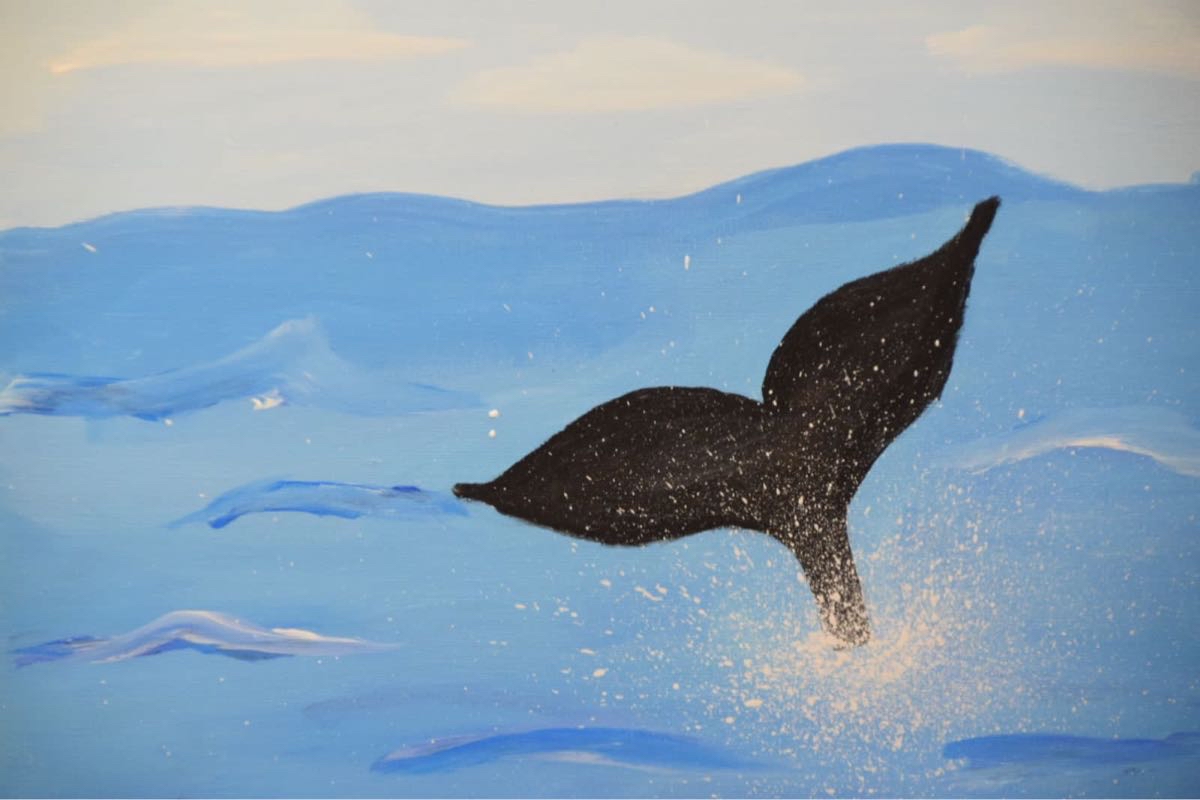 وشاركت الفنانة زينب لفتة ”11 سنة“، برسمة أمواج يظهر منها نهاية لذيل دولفين أسود، وتدرجات السماوي بين البحر والسماء، وقالت: لم أحصل على تعليق من المشرفات، سوى أنها ”جميلة، ودقيقة“.