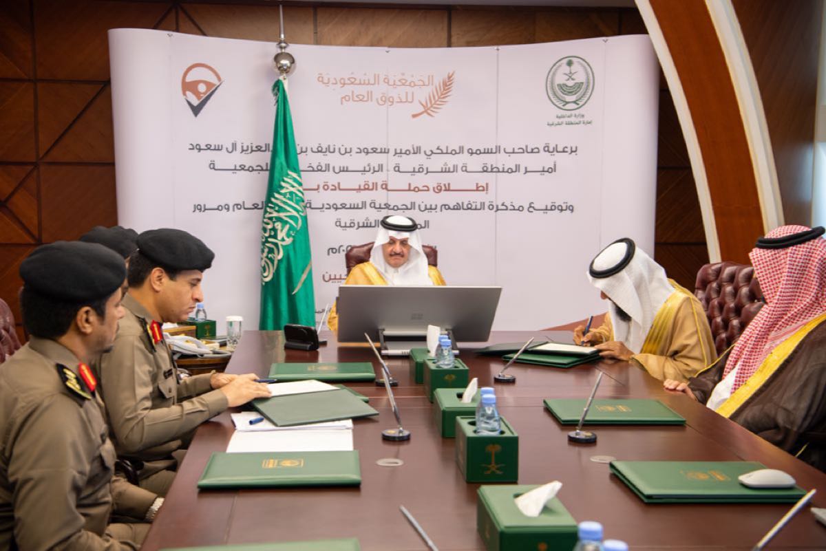 دشَّن الأمير سعود بن نايف بن عبدالعزيز أمير المنطقة الشرقية، انطلاق حملة «القيادة بذوق»، وتوقيع مذكرة تفاهم بين الجمعية السعودية للذوق العام، ومرور المنطقة الشرقية، الذي يُعدّ أحد برامج ومشاريع مبادرة «وطن الذوق»، التي تضم عشرة برامج نوعية، تواكب التوجهات الوطنية الحديثة ورؤية المملكة 2030، والتي تهدف إلى نشر وتعزيز ثقافة الذوق العام في مختلف جوانب ومناحي الحياة.