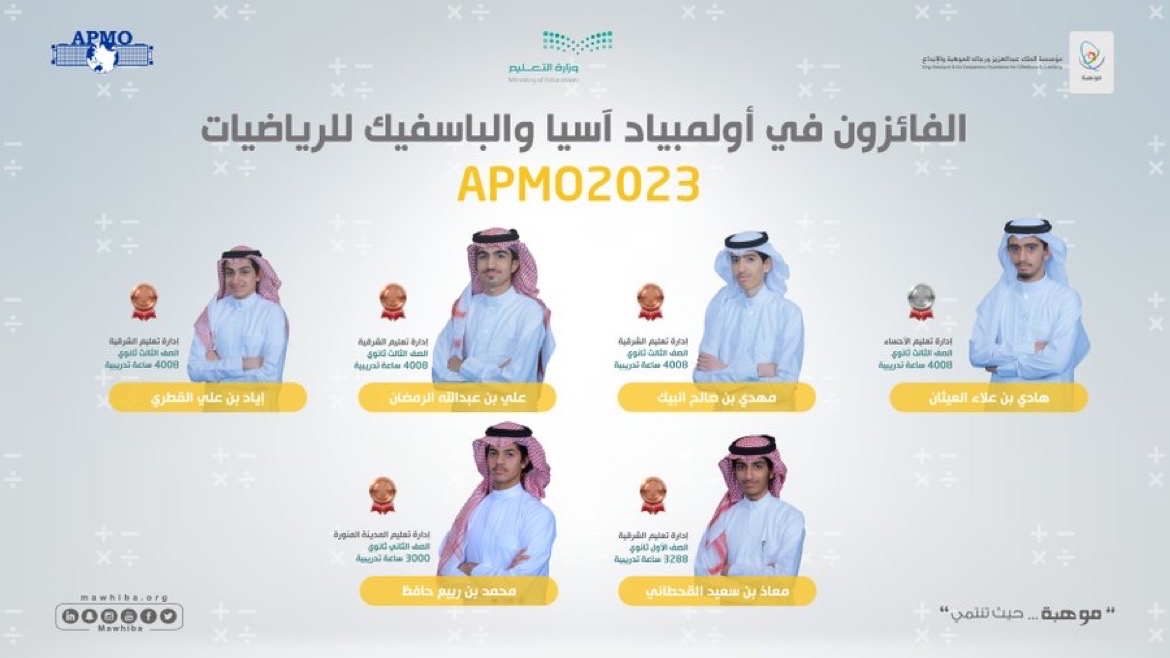 حققت المملكة العربية السعودية إنجازا رياضيا مميزا في أولمبياد آسيا والباسفيك للرياضيات الخامس والثلاثين، الذي أقيم عن بعد بمشاركة 345 طالبا يمثلون 35 دولة.