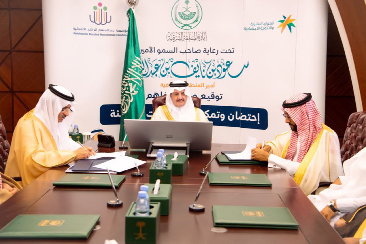 بارك الأمير سعود بن نايف بن عبدالعزيز أمير المنطقة الشرقية، في مكتبه بديوان الإمارة، اليوم، توقيع اتفاقية بين فرع وزارة الموارد البشرية والتنمية الاجتماعية بالمنطقة الشرقية، ومؤسسة عبدالمنعم الراشد الإنسانية، والتي تهدف إلى إطلاق مبادرة «احتضان وتمكين الجمعيات الناشئة».