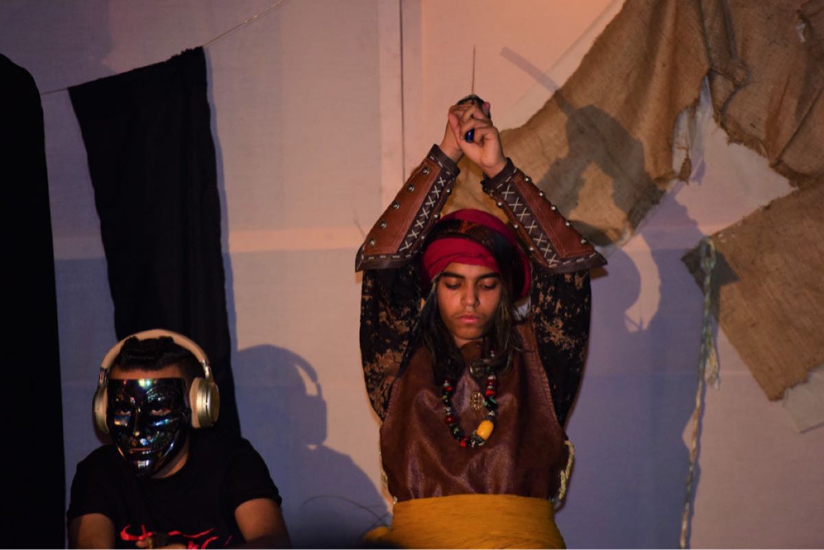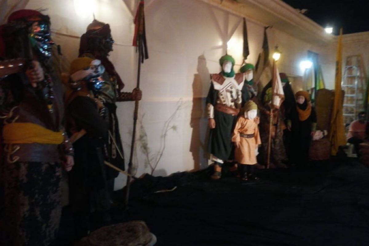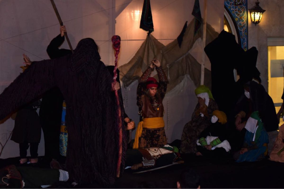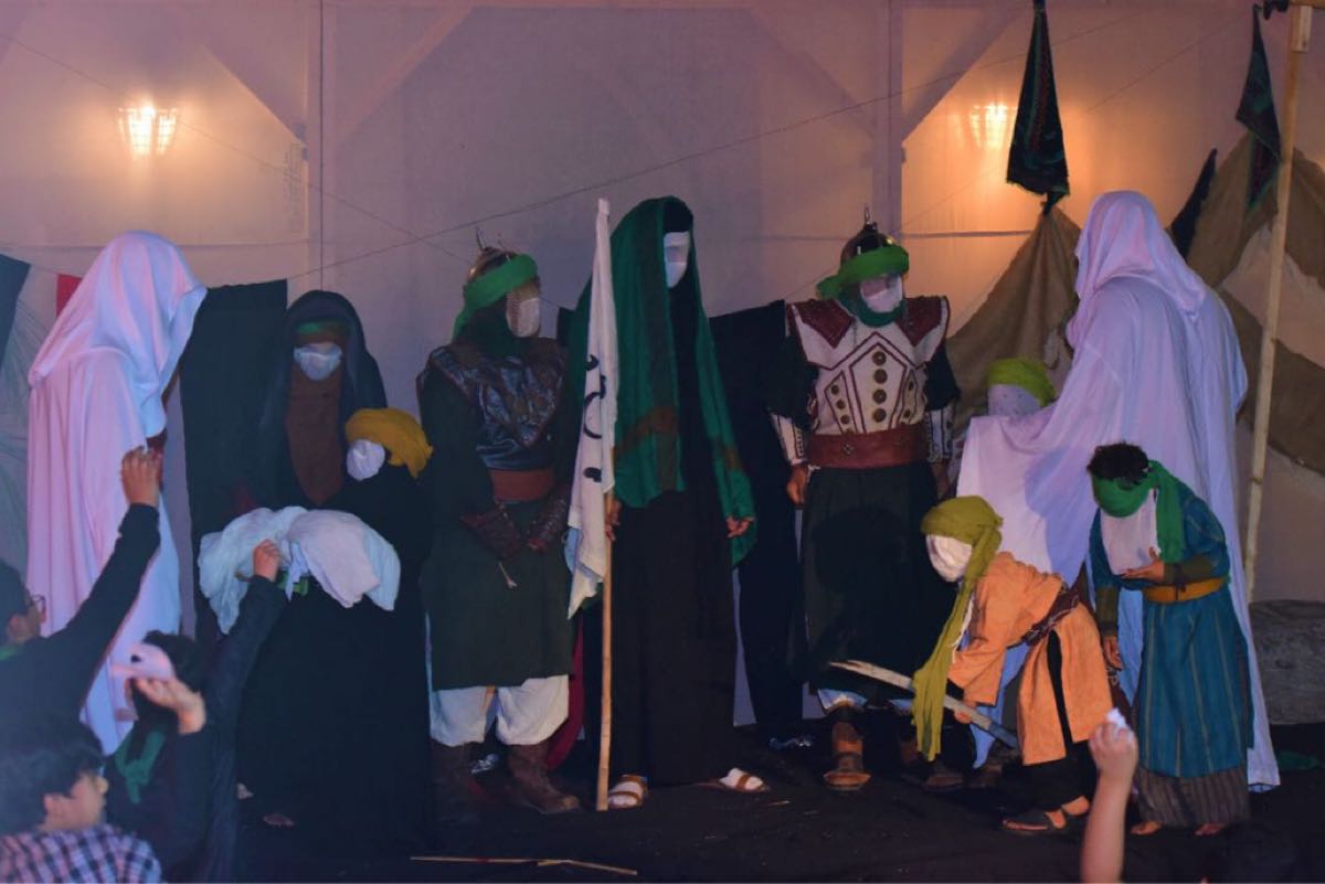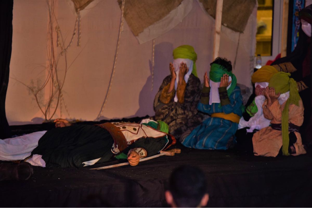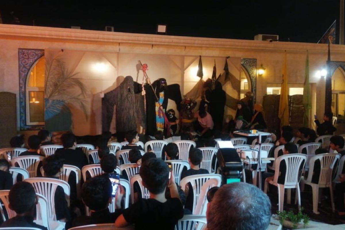 15 شبلًا يستعرضون مشاهد تمثيلية في مسرحية «كربلاء والشيطان» بأم الحمام