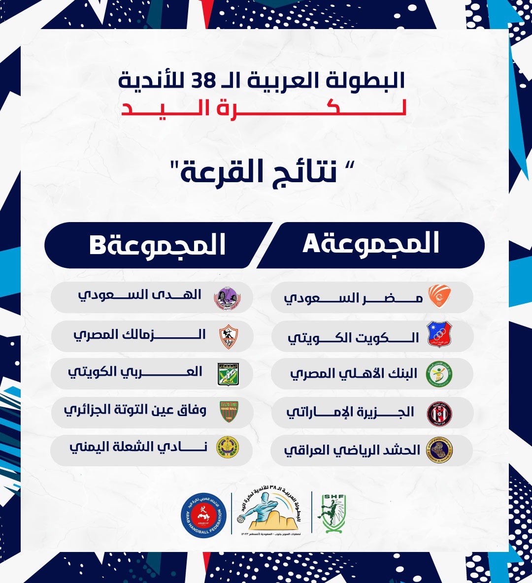 قرعة البطولة العربية لكرة اليد.. الهدى يصطدم بالزمالك.. ومضر في تحدي الكويت