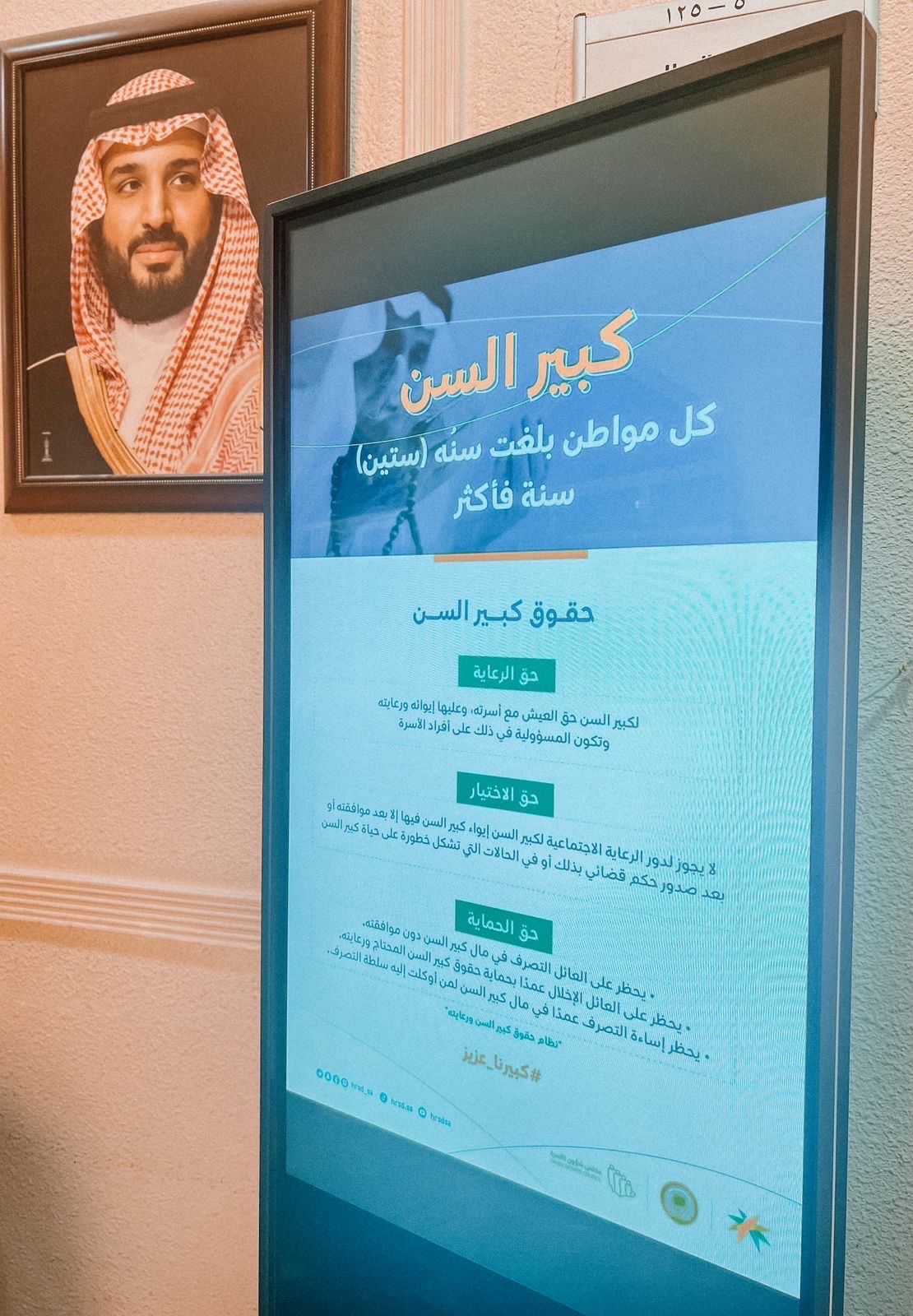 وتهتم المملكة بحقوق كبار السن بشكل كبير، حيث صدر المرسوم الملكي رقم «م/ 47» في عام 1443 هـ بما يحفظ كرامتهم وخصوصيتهم واستقلاليتهم وكذلك يوفر لهم الرعاية والخدمات إيمانا ووفاء لهم.