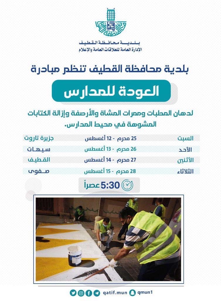 أعلنت بلدية القطيف اليوم السبت عن إطلاق مبادرة العودة إلى المدارس، التي تهدف إلى تحسين المشهد الحضاري في محيط المدارس بالمحافظة.