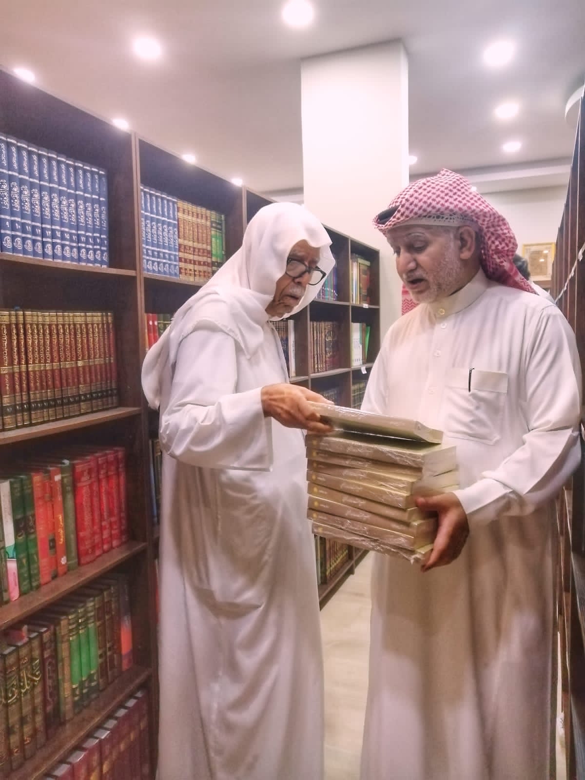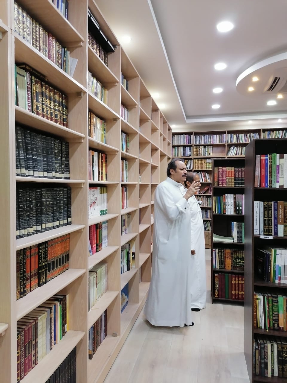 وأكمل: مكتبته سواء المتخصصة في التاريخ والآثار أو العامة في مختلف المجالات، كبيرة ومنظمة حسب احتياجه بالموسوعات وأسماء المؤلفين، إضافة إلى تعاونه مع طلاب وطالبات جامعة الإمام عبد الرحمن بن فيصل في التخصص الجديد الدي تم فتحه مؤخرًا كمكتبة مرجع يستفيدون منها في أبحاثهم.