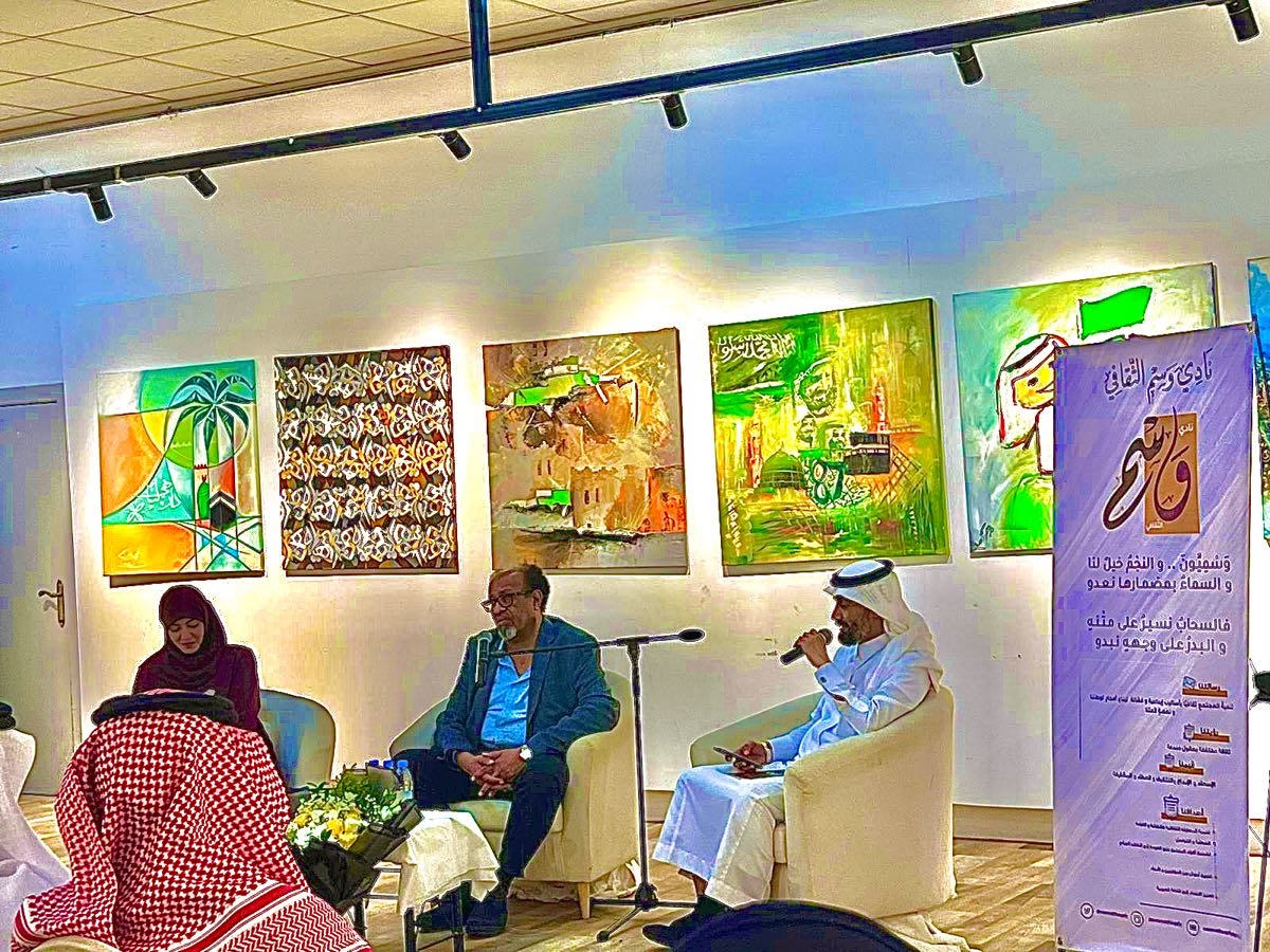 وإدار الأمسية تركي آل الحارث، رئيس نادي وسم الثقافي، بمساعدة القارئة والمحاورة زهراء الجبيلي.