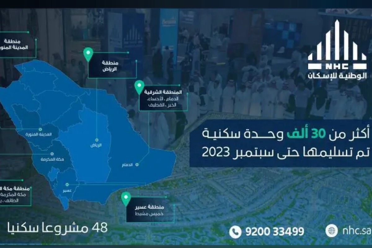 أعلنت الشركة الوطنية للإسكان NHC بالتزامن مع اليوم الوطني السعودي الثالث والتسعين، عن تسليم أكثر من 30 ألف وحدة سكنية حتى سبتمبر الحالي 2023.