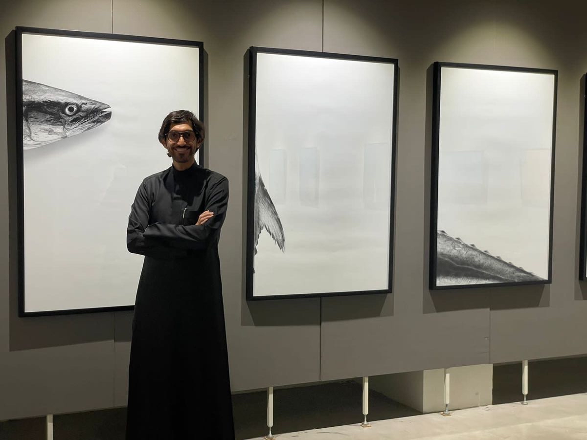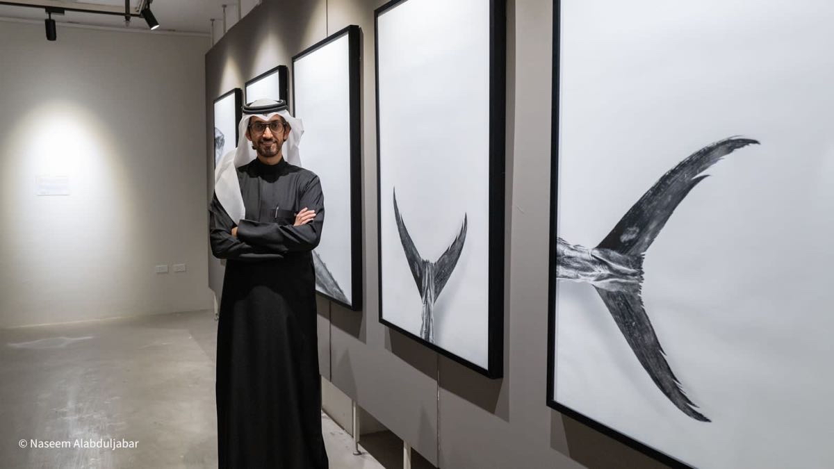 اختار الفوتوغرافي يوسف المسعود سمكة ”الكنعد“ للمشاركة في معرض ”سُبر البساطة“ في خمس تقطيعات للصورة مجردة من الألوان.