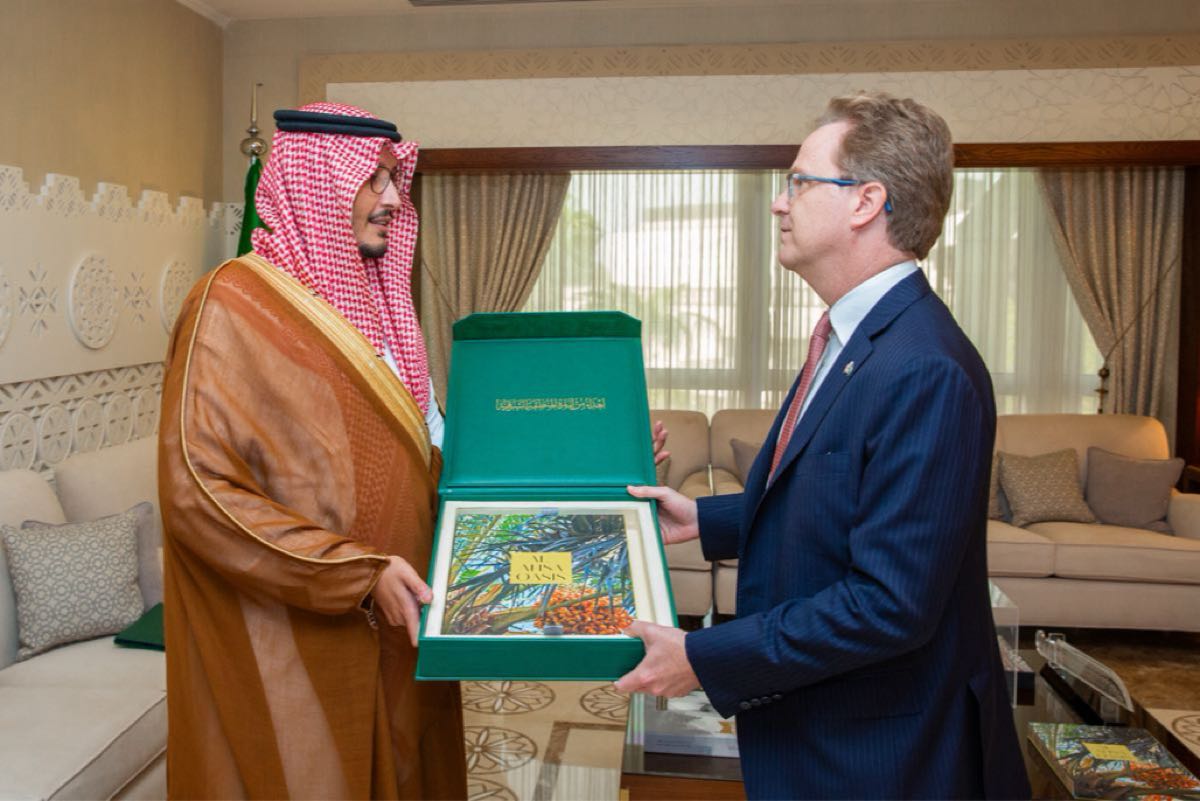 على جانب آخر، استقبل الأمير أحمد بن فهد بن سلمان بن عبدالعزيز نائب أمير المنطقة الشرقية، في مكتبه بديوان الإمارة، اليوم، السفير الكندي لدى المملكة جان فيليب لينتو.