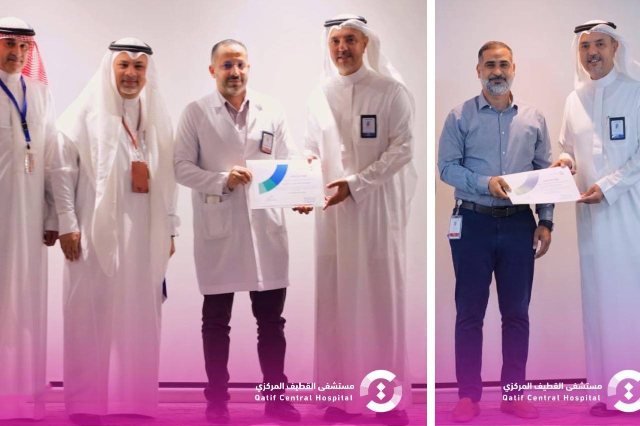 كرم مستشفى القطيف المركزي، الدكتور باسم أبو السعود، والدكتور حسين آل جواد، وذلك نظير جهودهما في إنقاد حياة شابة أثناء إجازتهما ملبين للنداء لأداء الواجب الطبي والإنساني.