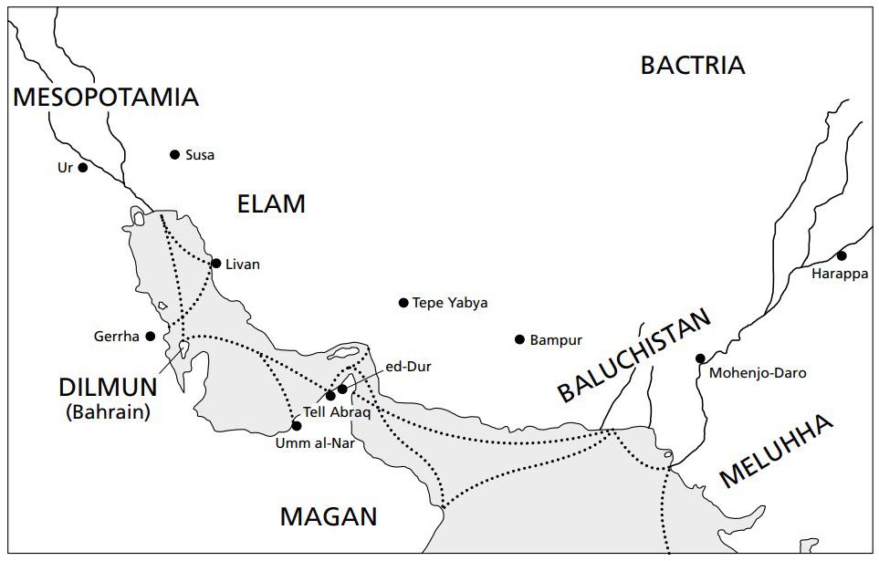 سيطر مركزان كبيران على الشرق الأوسط في تلك الفترة من السلطة، وبالتحديد بلاد ما بين النهرين ومصر، مع المنطقة الواقعة بينهما وحولهم تتكون من مجموعة متغيرة باستمرار من الممالك، دول المدن والاتحادات القبلية وما شابه ذلك. خلال هذا الوقت نحن نسمع فقط بالشواطئ الشرقية للجزيرة العربية والجزر التي تعشش بالقرب منها، والتي استفادت من القرب والتواصل مع الحضارات القديمة لبلاد الرافدين في العراق، عيلام في جنوب غرب إيران وملوحة في وادي السند.