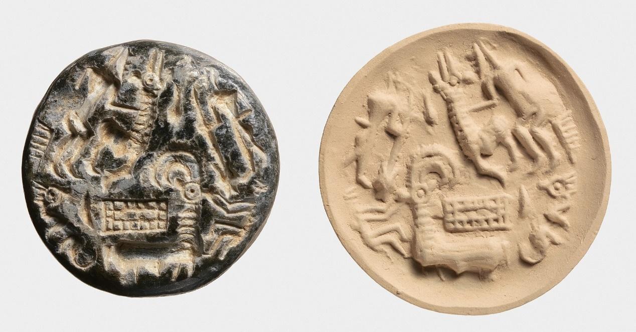 ختم من دلمون مع الصيادين والماعز، حوالي أوائل الألفية الثانية قبل الميلاد.