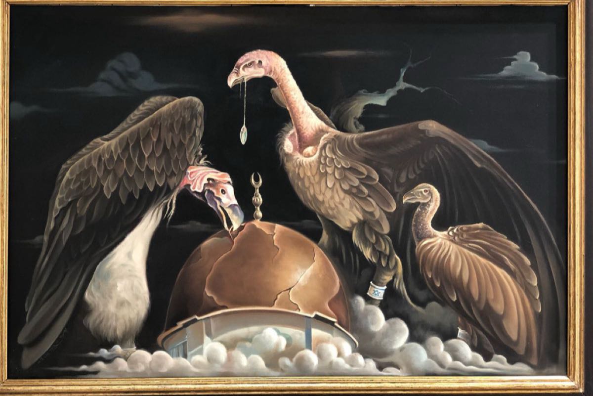 «نسور غاصبة للقدس المحتلة».. لوحة للتشكيلي أبو حسين