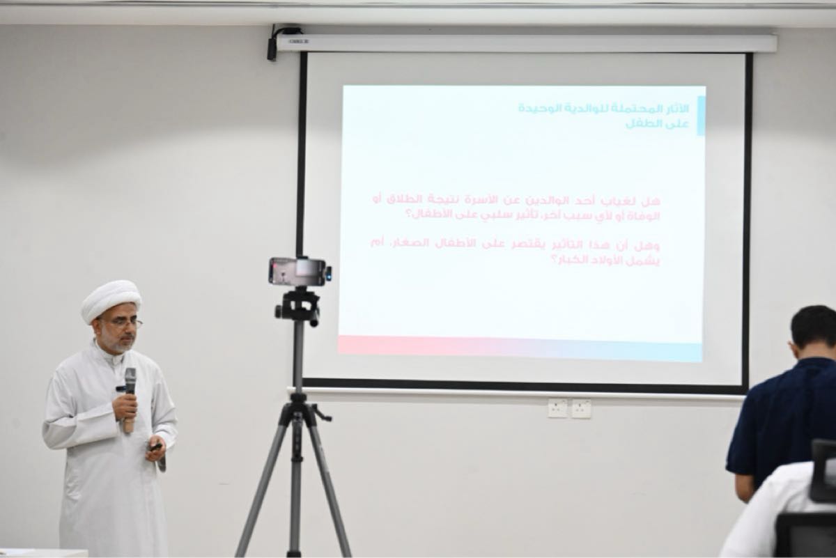 وقال خلال المحاضرة التي قدّمها بعنوان ”الوالدية الوحيدة“، في قاعة المحاضرات، بمقر جمعية البر الخيرية بسنابس: إن الدراسات تشير إلى أن الطلاق يمكن أن يكون مدمرًا بالنسبة للأطفال تمامًا كوفاة أحد الوالدين، ولكن كل هذا يتوقف على الطريقة التي يدار بها الوضع، كما أن الأمر أكثر خطرًا على الأولاد من البنات؛ لأنهم أكثر صعوبة في تقبل الأمر.