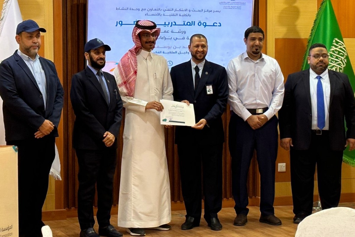 أقامت الكلية التقنية في مدينة المبرز بالأحساء صباح اليوم الإثنين ورشة عمل تحت عنوان «مقدمة في براءات الاختراع» قدمها وكيل الملكية الفكرية المحامي محمد يوسف الحسن.