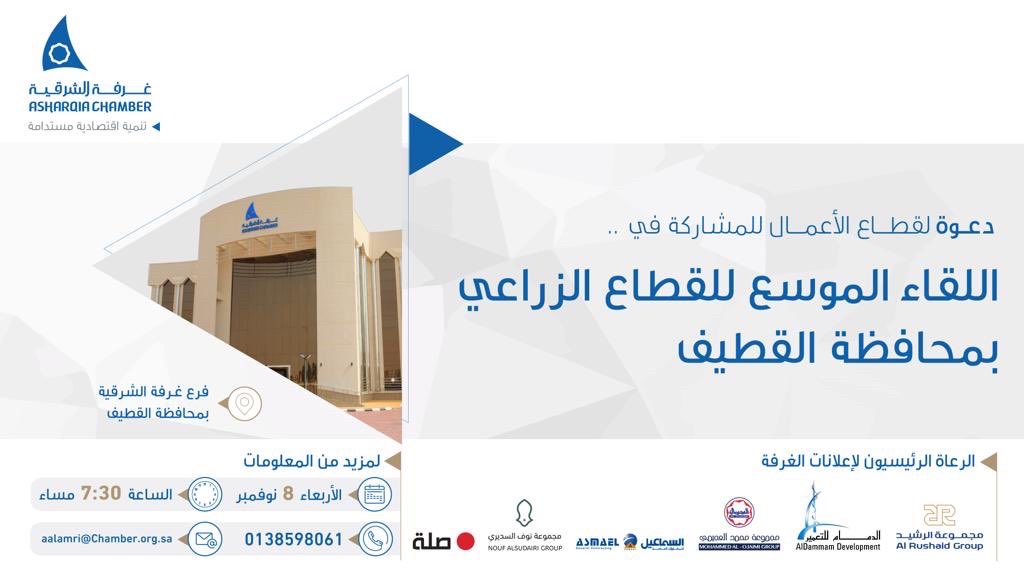 ودعت الغرفة المهتمين بقطاع الأعمال للمشاركة في اللقاء الذي سيعقد في قاعة الاجتماعات الرئيسية بفرع الغرفة في القطيف، الساعة السابعة مساءً.