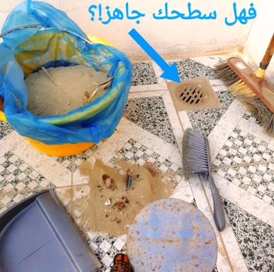 ونشرhttps://www.instagram.com/p/CzDyBzksQNC/“ target= ”_blank“ > صورة على حسابه في الانستجرا، توضح تجمعات الأتربة والأوساخ في ”فتحة الصفايات“ أعلى الأسطح، حيث استخرج منها قرابة عشرة كيلوجرامات من الرمل أثناء تنظيفها.