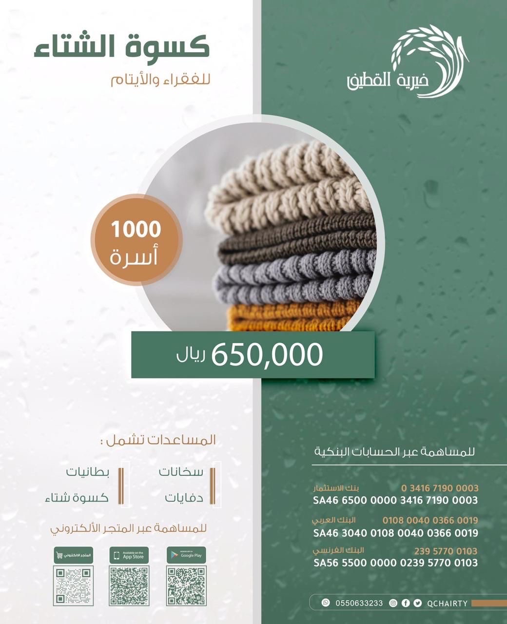 650 ألف ريال مبادرة خيرية القطيف لـ ”كسوة الشتاء“