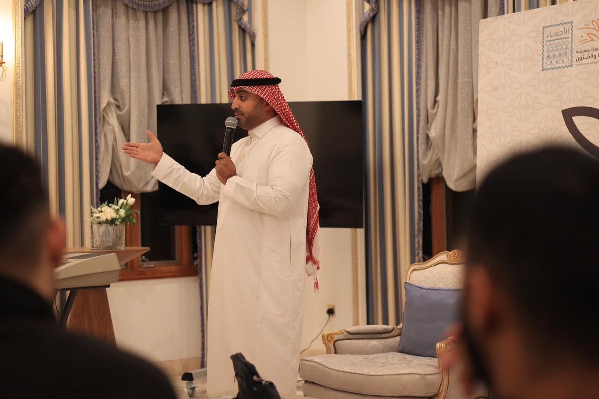 درب المنشد صابر المضحي، عددًا من المهتمين بالفنون الموسيقية، على فن ”الكورال“، وذلك ضمن مبادرات ”الشرقية تبدع“، في دار نورة الموسى للفنون بالأحساء.