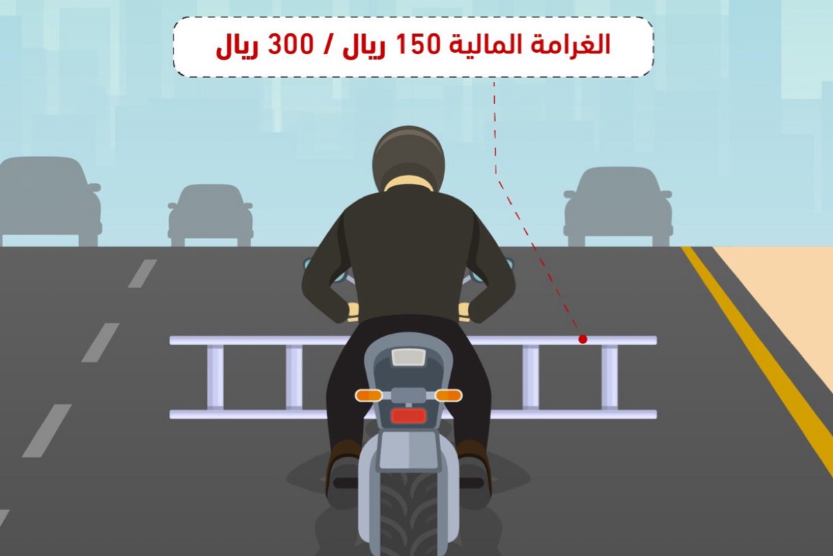 وأوضح المرور السعودي أن قيام قائد الدراجة النارية أو الهوائية أو مافي حكمها بالتعلق بأي مركبة أخرى أو سحب أو حمل أشياء تعرض مستخدم الطريق للخطر، مما يعد مخالفة مرورية.