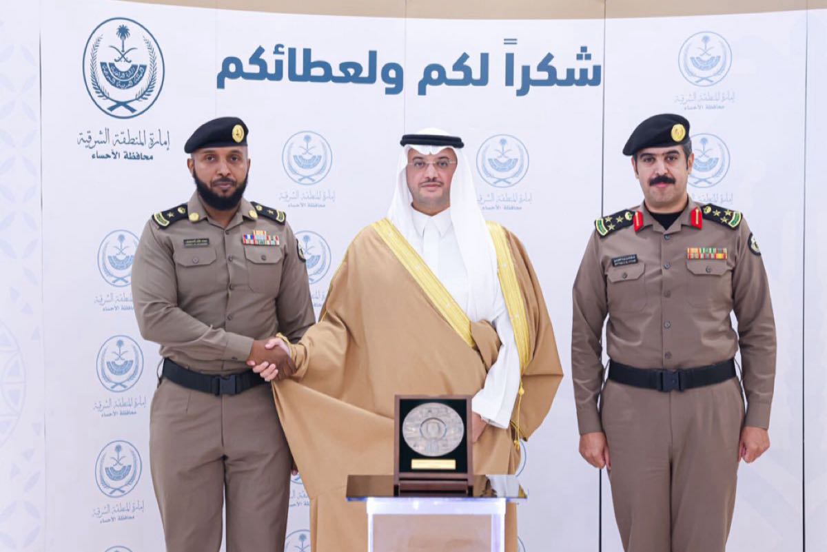 من جهته، رفع مدير شرطة المحافظة العميد سطام العتيبي نيابة عن ضباط وأفراد الشرطة، بالغ الشكر والامتنان لمحافظ الأحساء، لتكريمه ودعمه المستمر لمنسوبي شرطة المحافظة والقطاعات الأمنية المختلفة.