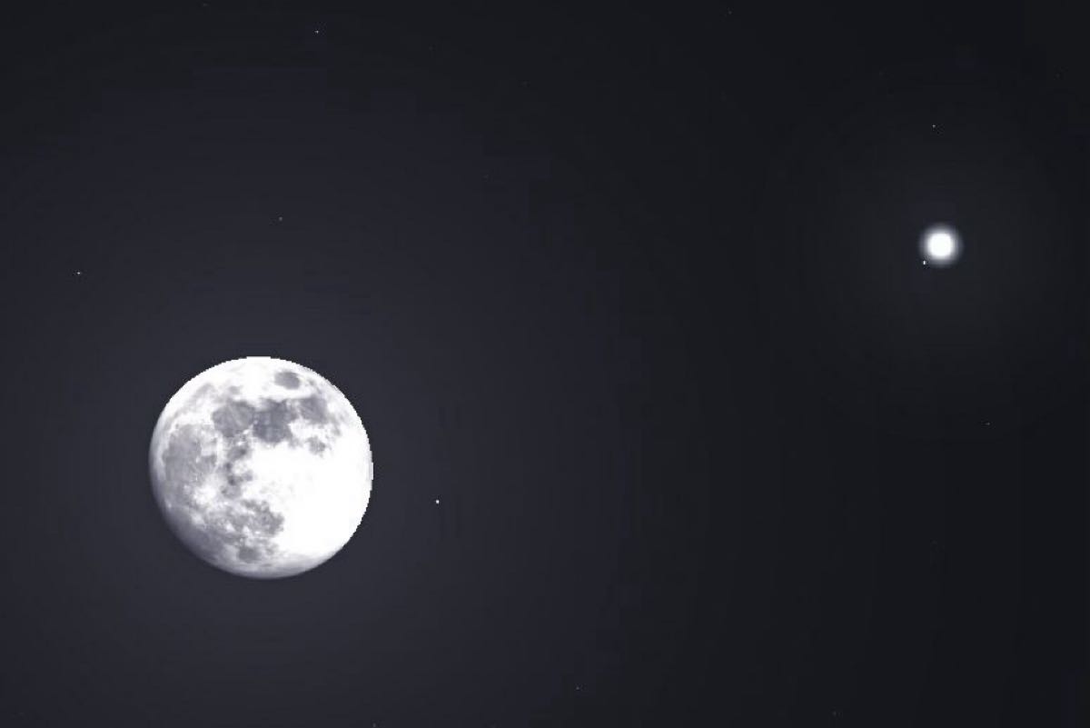 تشهد سماء الوطن العربي اليوم السبت اقترانًا بديعًا بين القمر والمشتري، أكبر كواكب المجموعة الشمسية، حيث سيظهران متجاورين في السماء، وسيفصل بينهما درجتان فقط.