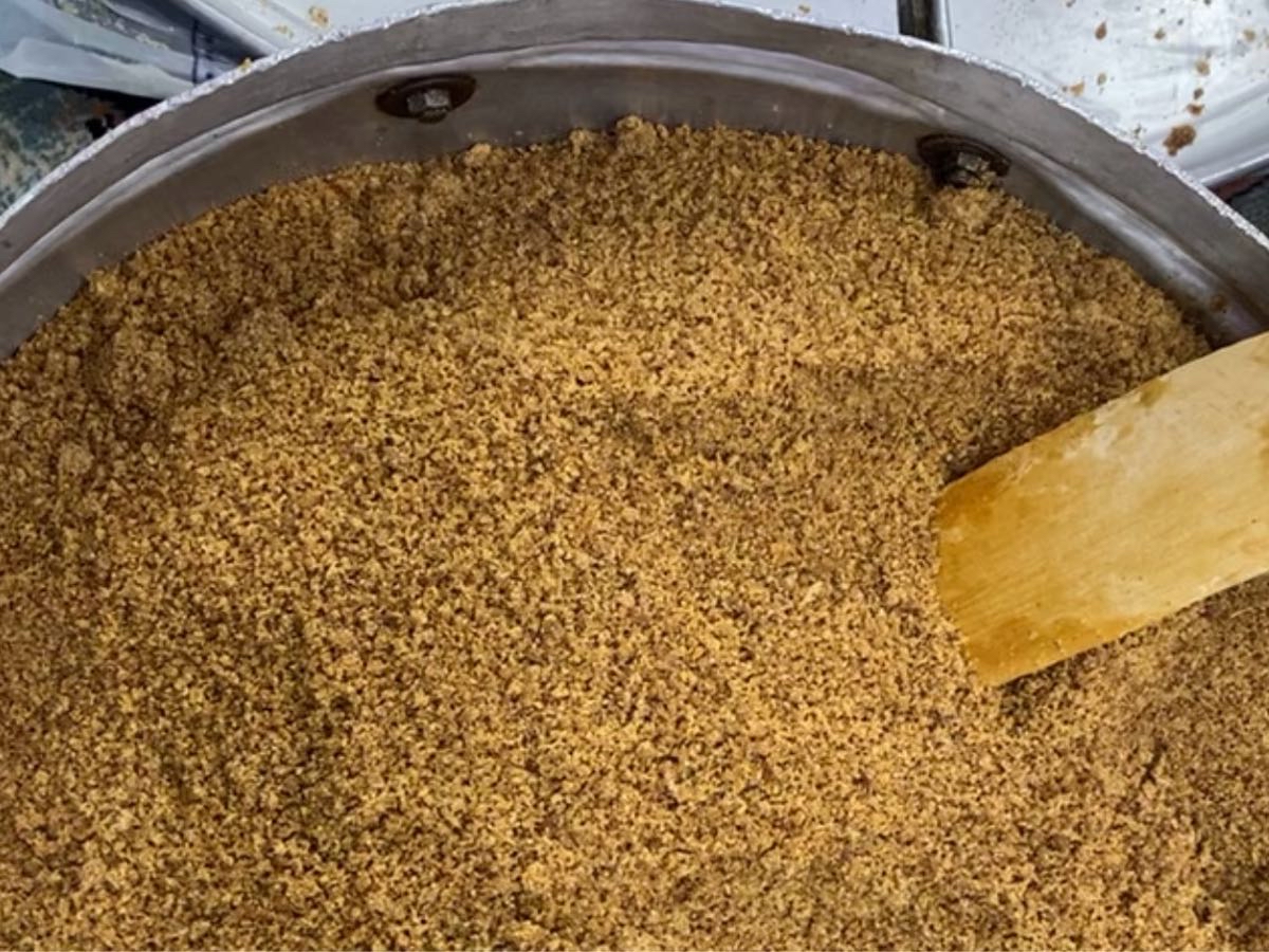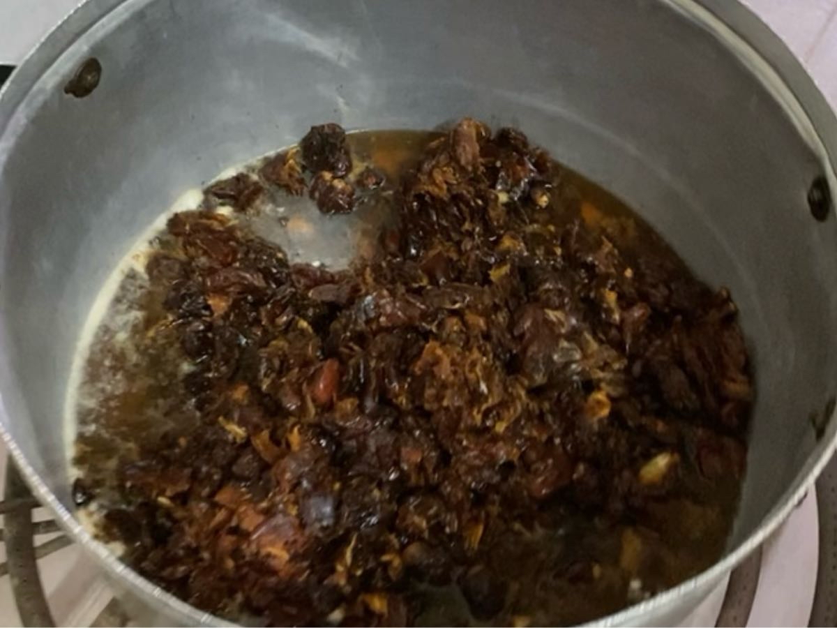 وأضافت إلى هذه المكونات ملعقة طعام حلوة حساوية وملعقة صغيرة قرنفل حسب الرغبة وملعقة صغيرة هيل، ثم خلط المكونات وتقليبها، بالإضافة إلى إضافة السمن أو الزبدة المذوبة وساخنة وتقليبها وتركها على نار هادئة.