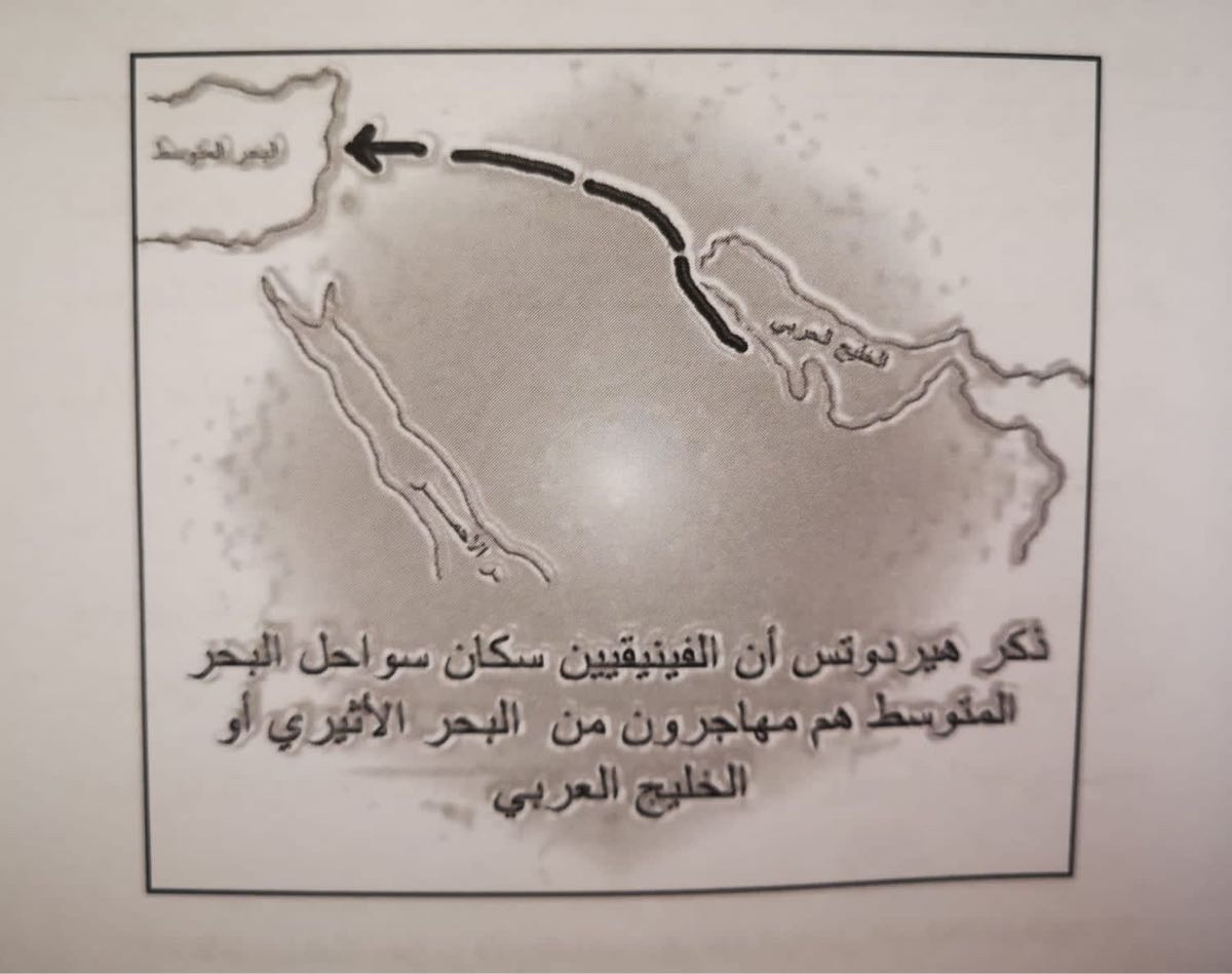 وأشار إلى أن هيردوتس قد أورد خبرًا مفاده أن سكان البحر المتوسط هم مهاجرون من البحر الأثيري أو الخليج العربي.