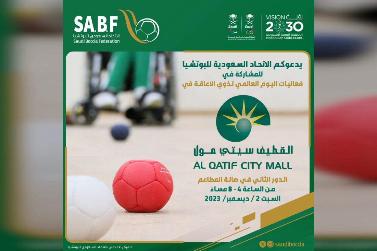 ينظم الاتحاد السعودي للبوتشيا، فعاليات ومسابقات، يوم غدٍ السبت في أحد مجمعات القطيف التجارية، تزامنًا مع اليوم العالمي لذوي الإعاقة، الذي يصادف 3 ديسمبر 2023، وذلك من الساعة 4-8 مساء.