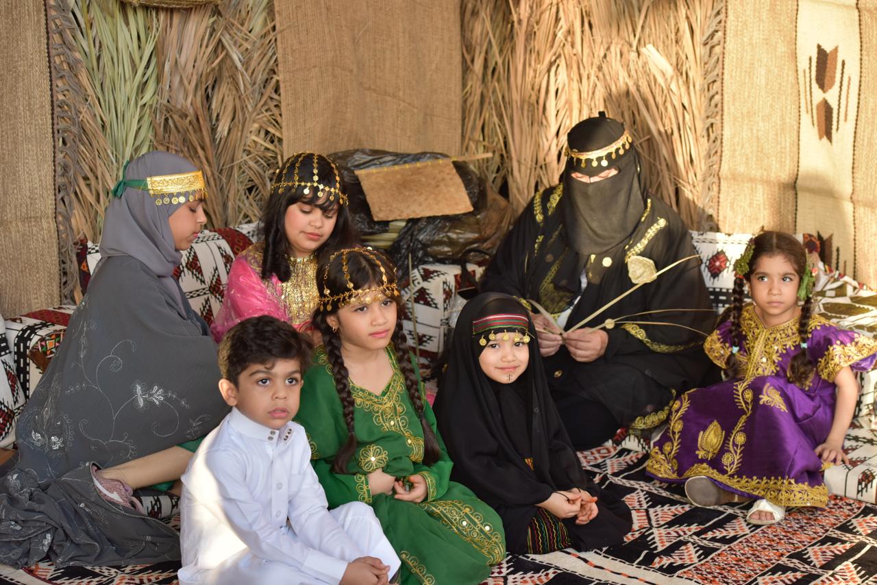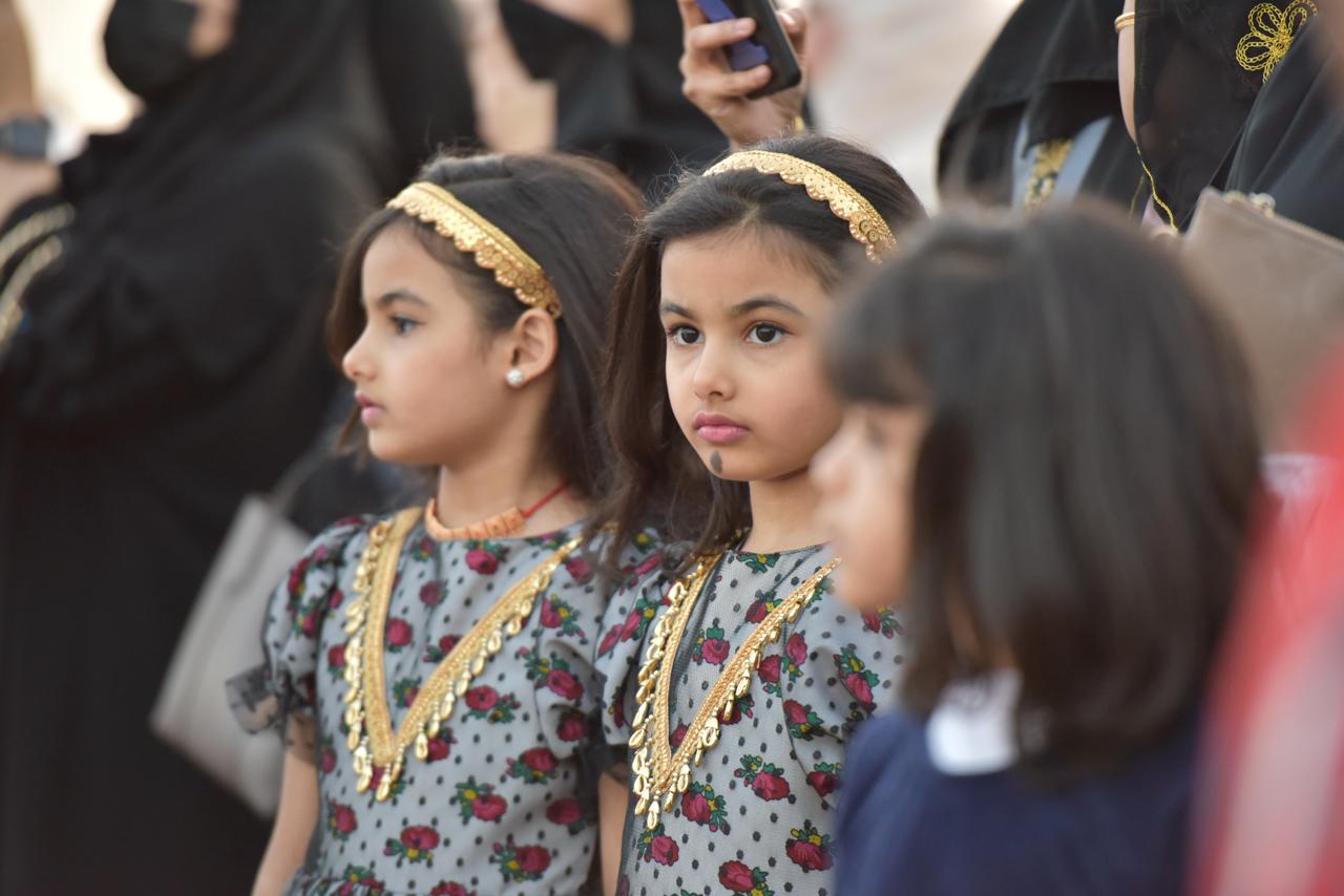 وتوافد الأطفال مرتدين أزياءهم الشعبية التقليدية، فرحين بإحياء ذكرى تأسيس بلدهم العريق. وتباينت الأزياء بين مختلف المناطق، حيث ارتدى بعض الأطفال الزي العسيري المميز، بينما ارتدى آخرون الزي الحجازي أو الشمالي، مُشكلين لوحة فنية رائعة تُجسد تنوع الثقافات السعودية.