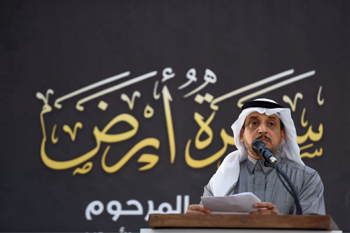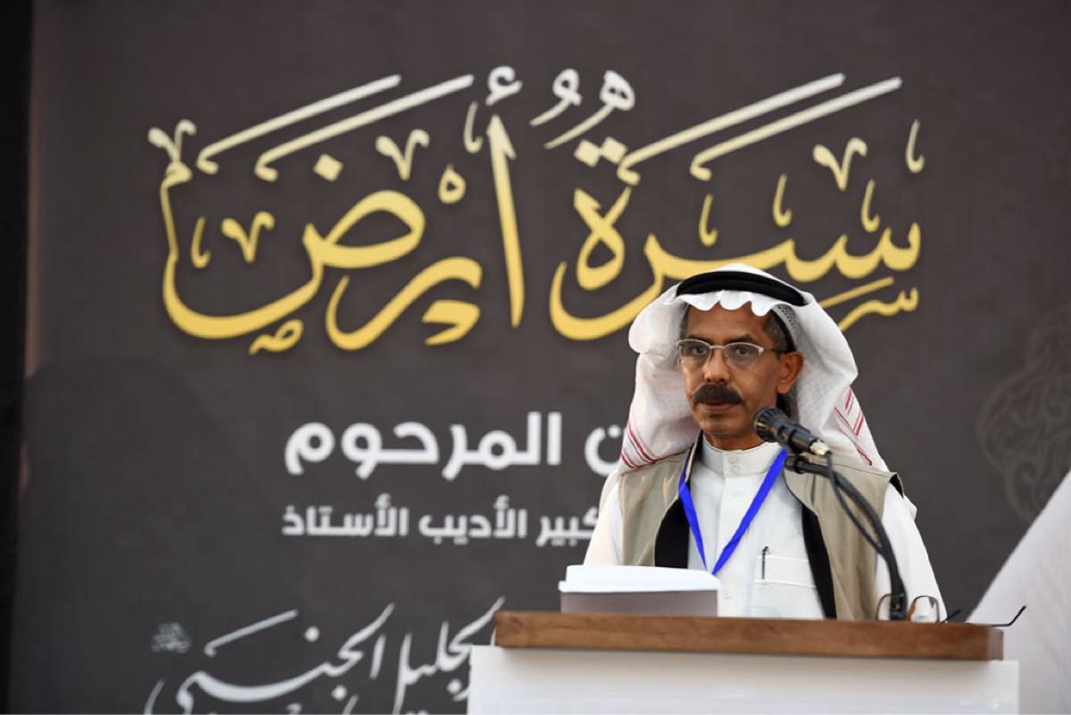 وقال: ”بَعْضٌ مِنْ سِيْرَةِ أرْض، من أي قافية في دقائق أبتديك أيها الشاهق في سمائنا، وبأيها أختمك وأنت فهرسة التاريخ المطلِ على عيون الظلال الملونة، تمد أجنحة المواقيت الأزلية باحثًا ومؤرخًا، محققا وأديبا، يسافر فيك الشعر العتيق، فتغيب حضورًا في ذاكرة تفاصيلها الأسئلة المعلقة في متن المجاز، فنكتب خجلا بعضًا من سيرة أرض..!“.