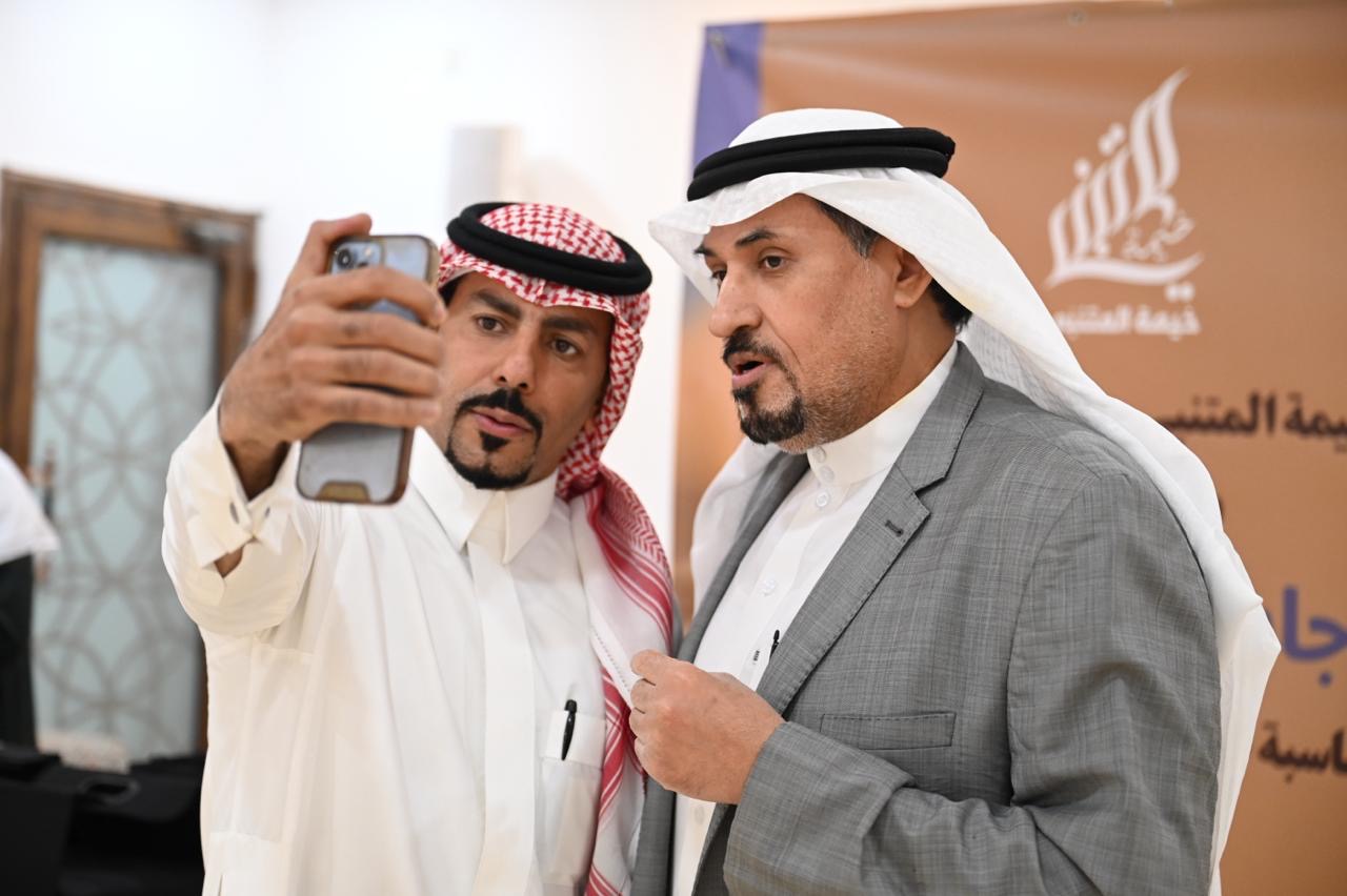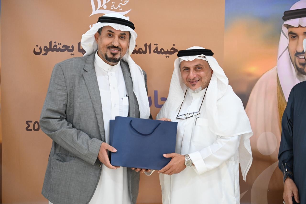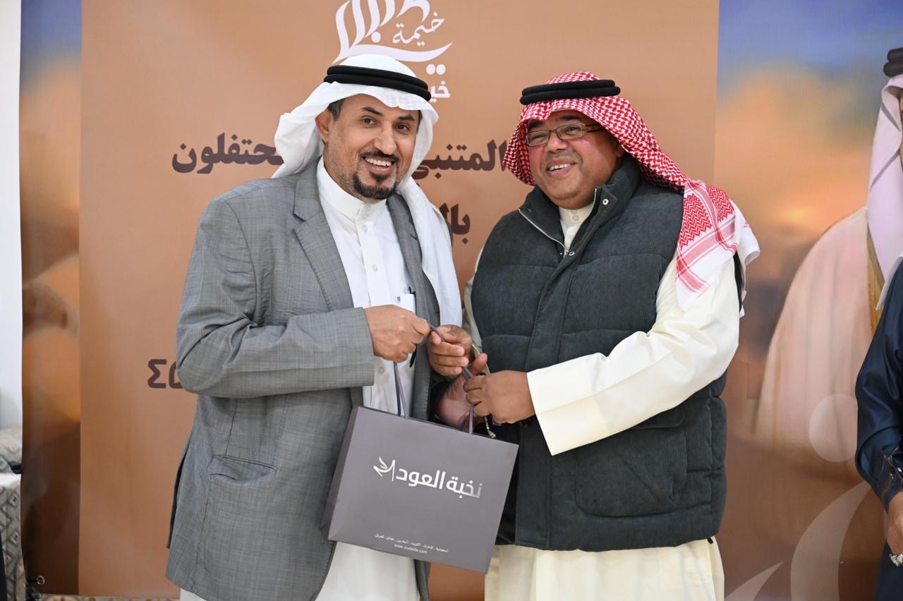 وفي الختام، قدمت خيمة المتنبي كعكة التهنئة رُسم عليها صورة ”شاعر المعلقة“، والتقطت الصور التذكارية.