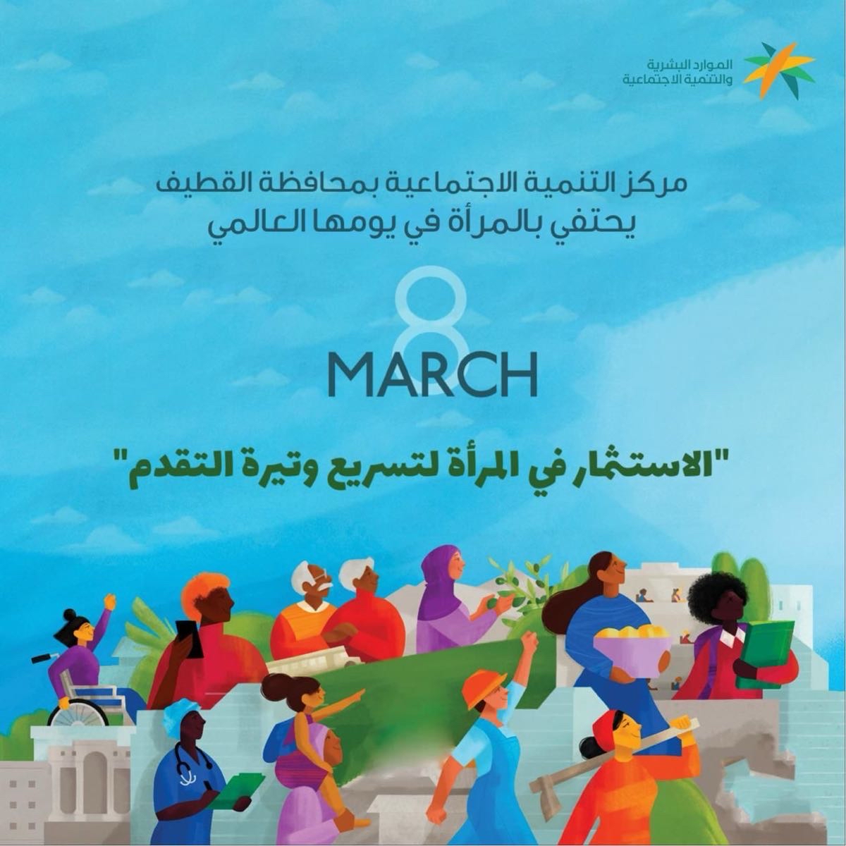 احتفى مركز التنمية الاجتماعية بمحافظة القطيف، باليوم العالمي للمرأة، الذي جاء هذا العام تحت عنوان ”الاستثمار في المرأة: تسريع التقدم“.