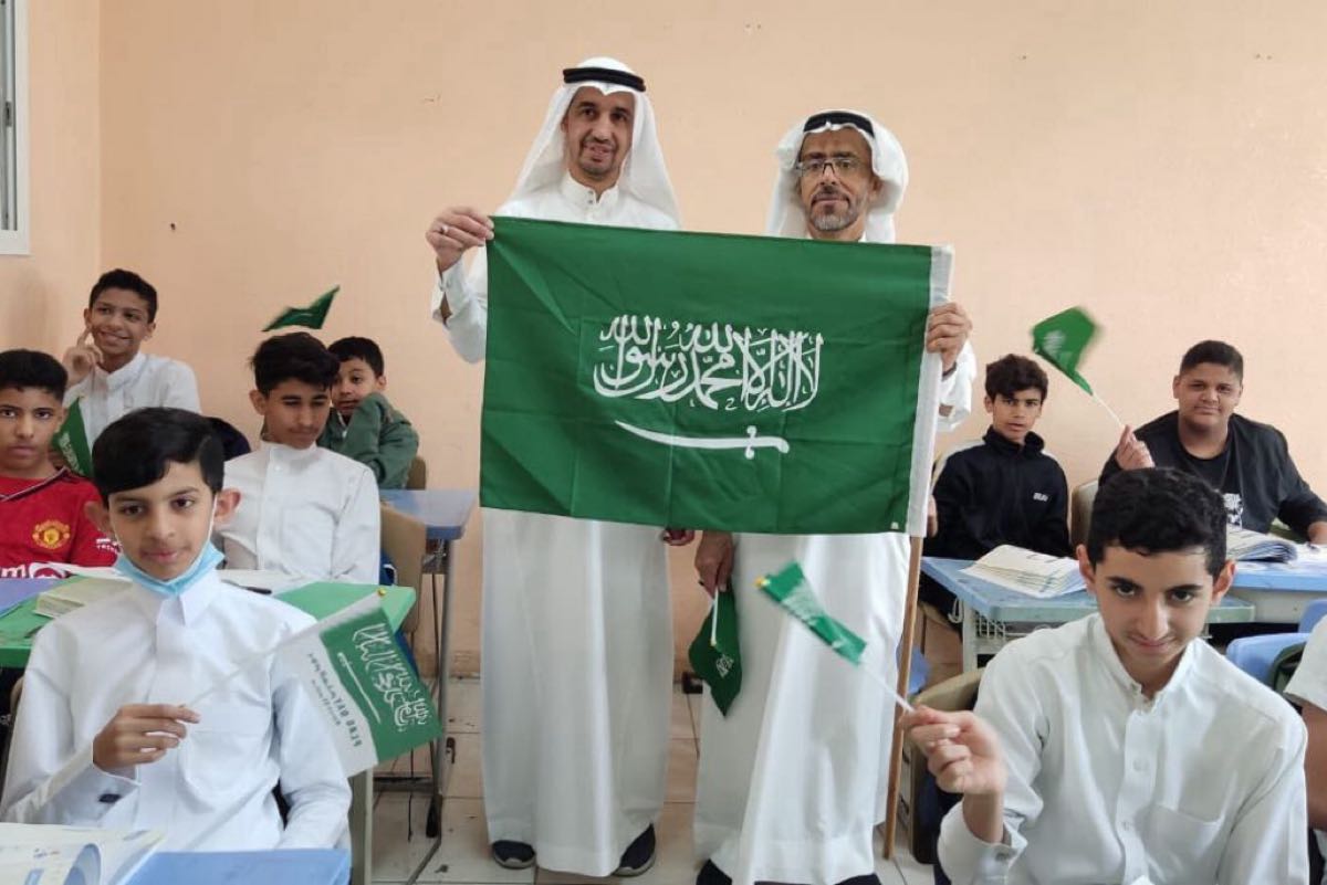القطيف.. جدران المدارس تتزين بلوحات وملصقات احتفاءً ب «يوم العلم»