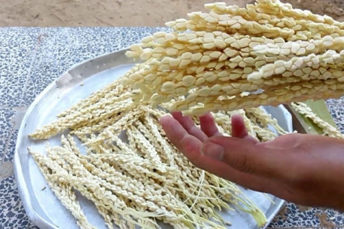 وأشارت إلى أن الأغاريض المذكرة يتم جمعها بعد التأكد من نضوجها الكامل، حيث تبدأ بالانفلاق والميلان للخارج، وإصدار فرقعة عند الضغط عليها بالأصابع. عندها يتم قطعها من النخلة ثم شقها طولياً واستخراج الشماريخ مباشرة.