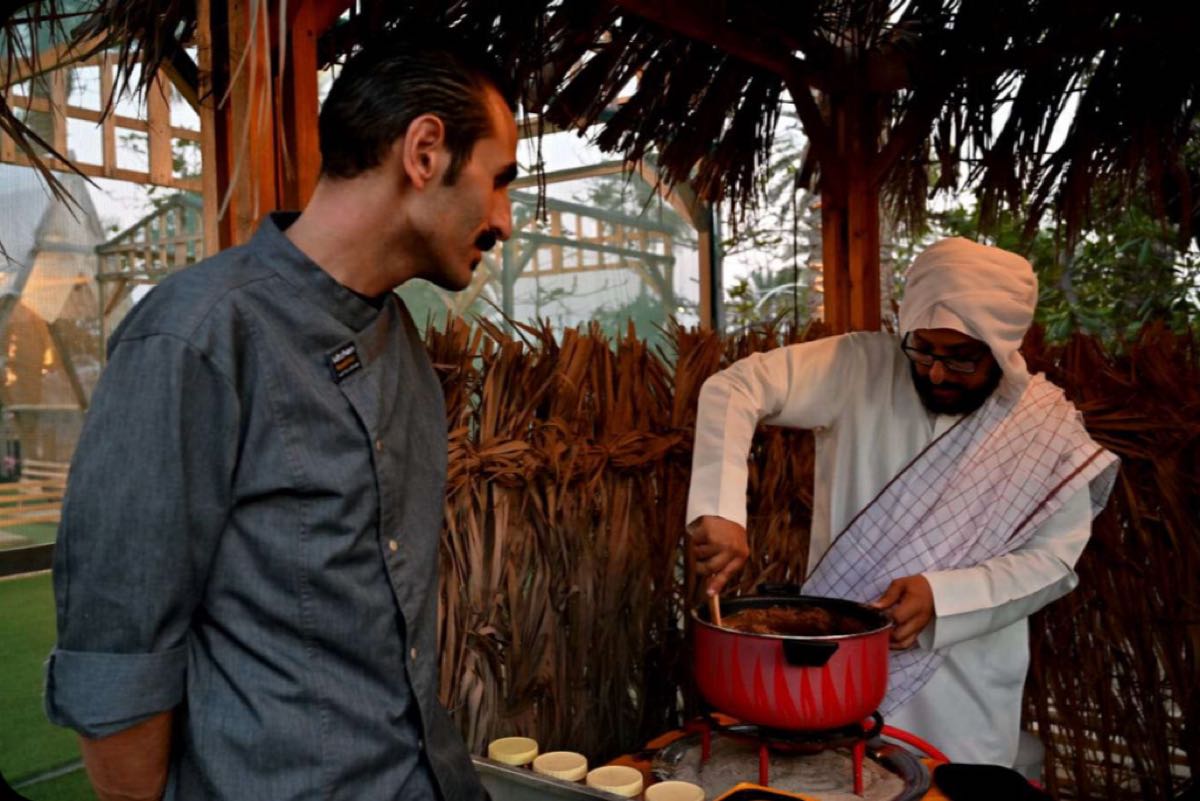 وبقيادة الشيف يوسف الحريري ومجموعة من طهاة المنطقة، تم تحضير مائدة عامرة بأطباق واصناف شعبية من صنع أيدي الأهالي، مثل الهريس والساقو والجريش ومختلف انواع السلطات والمقبلات وخبز التنور.