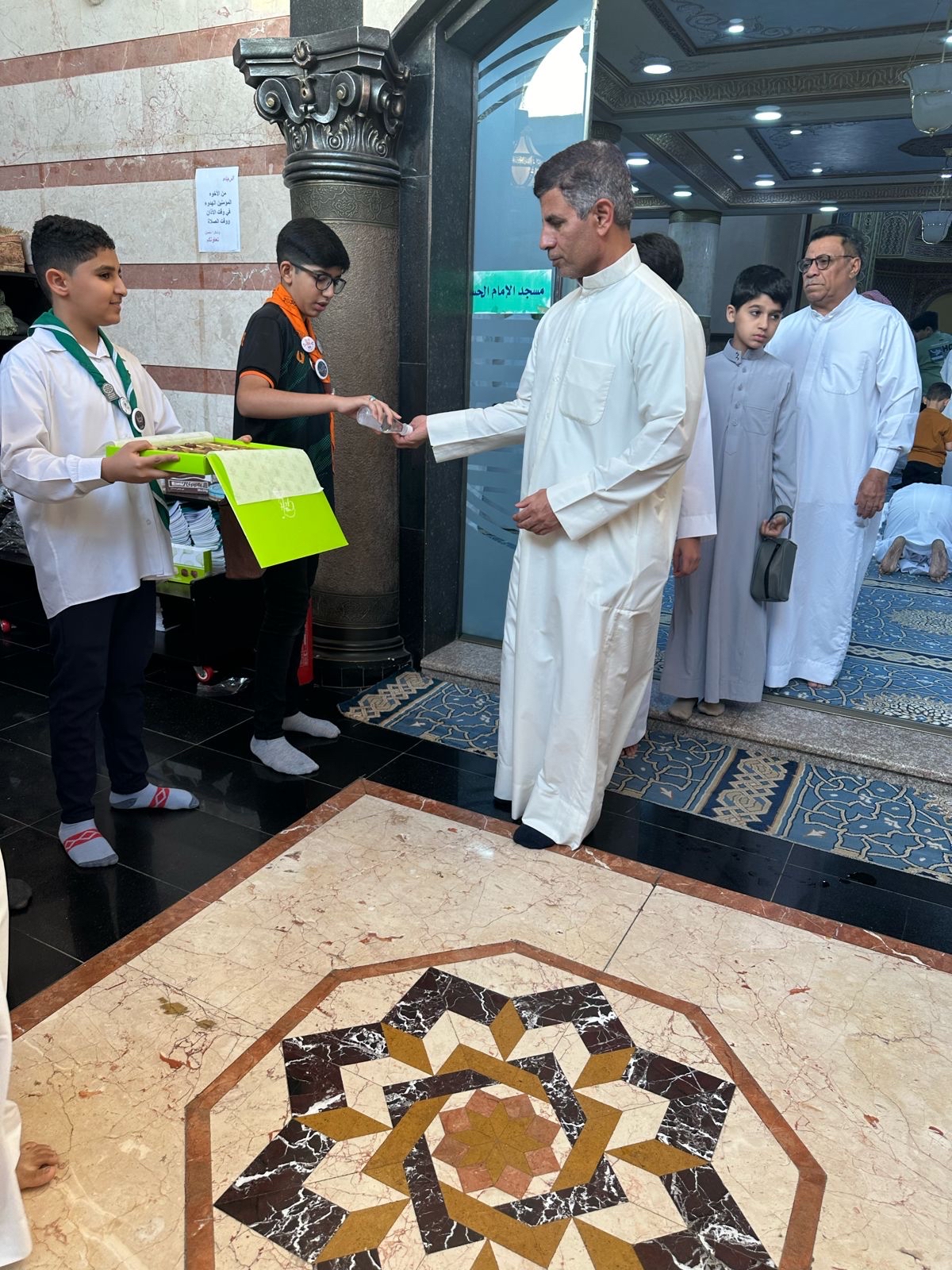 نظمت كشافة رسل السلام بنادي النور، برنامج استقبال مميز للمصلين في يوم عيد الفطر المبارك، بقيادة المفوض الكشفي علي العبندي.